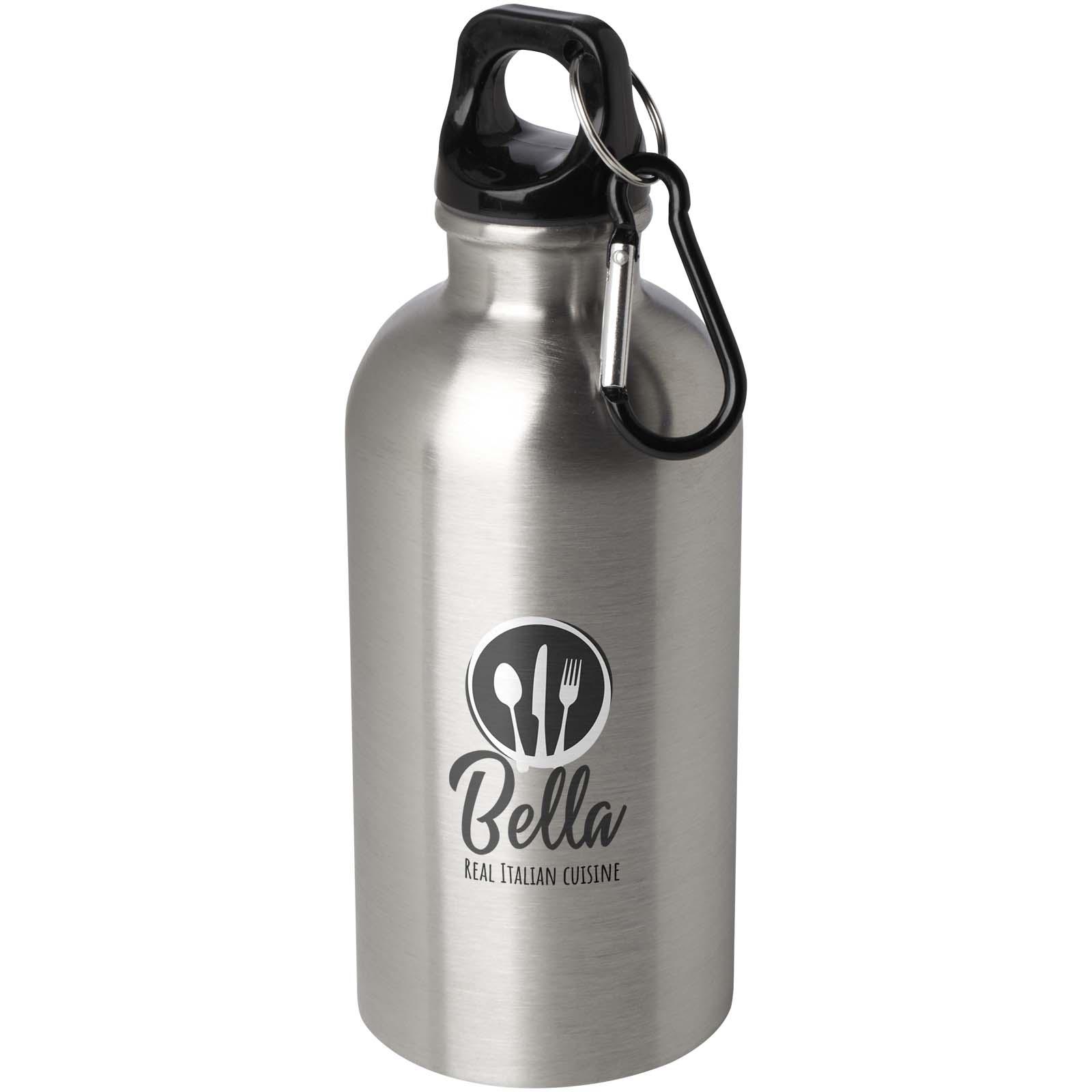 Oregon 400 ml RCS-zertifizierte, einwandige Trinkflasche aus Edelstahl mit Karabinerhaken für Firmen als Werbemittel bedruckt.