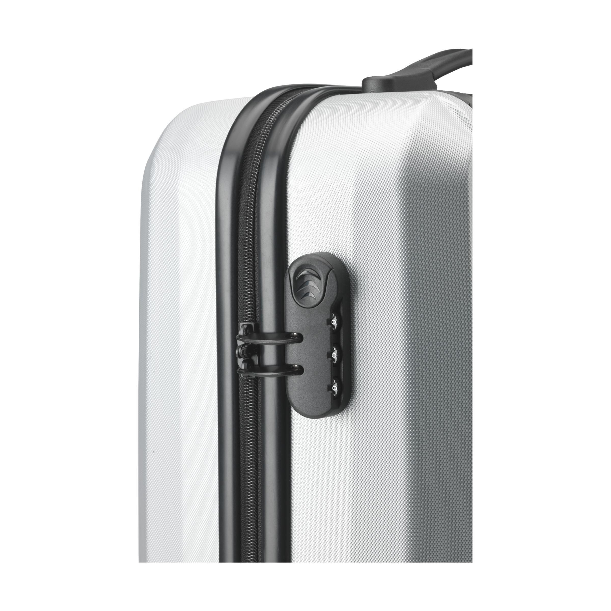 Trendiger, leichter Trolley aus 100% ABS in Metalloptik. Mit geräumigem Hauptfach, 4 Doppelrädern, erweitertem Metallgriff und Schloss. Capacity approx. 35 litres.