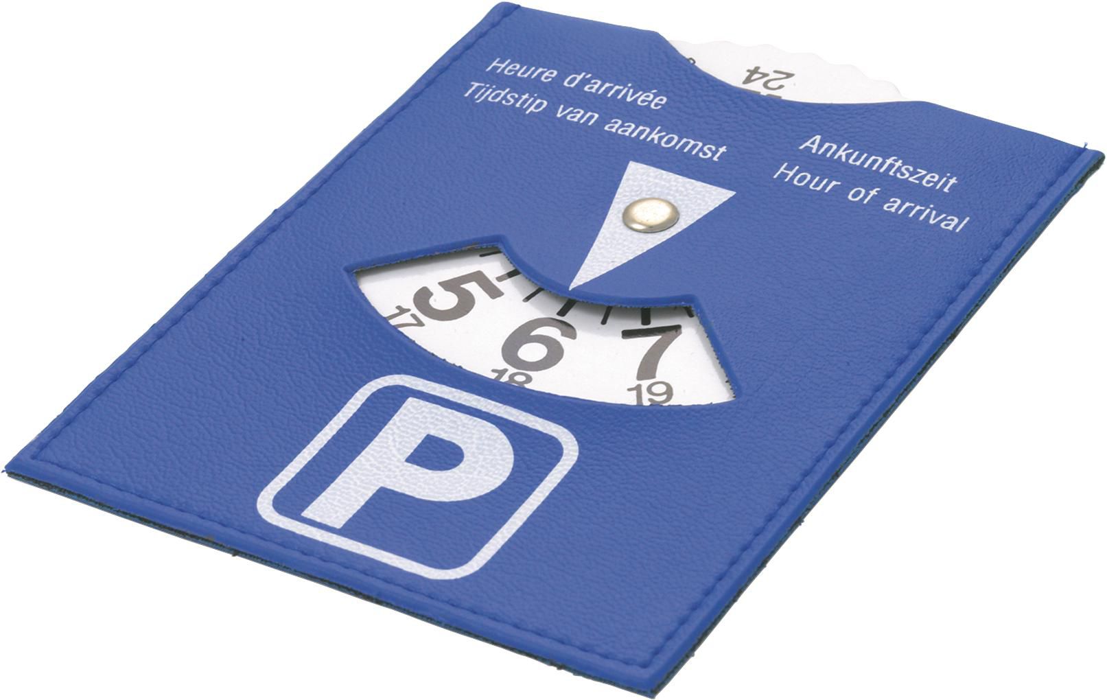 Parkscheibe aus PU Donovan mit Firmenlogo für Werbeaktionen.