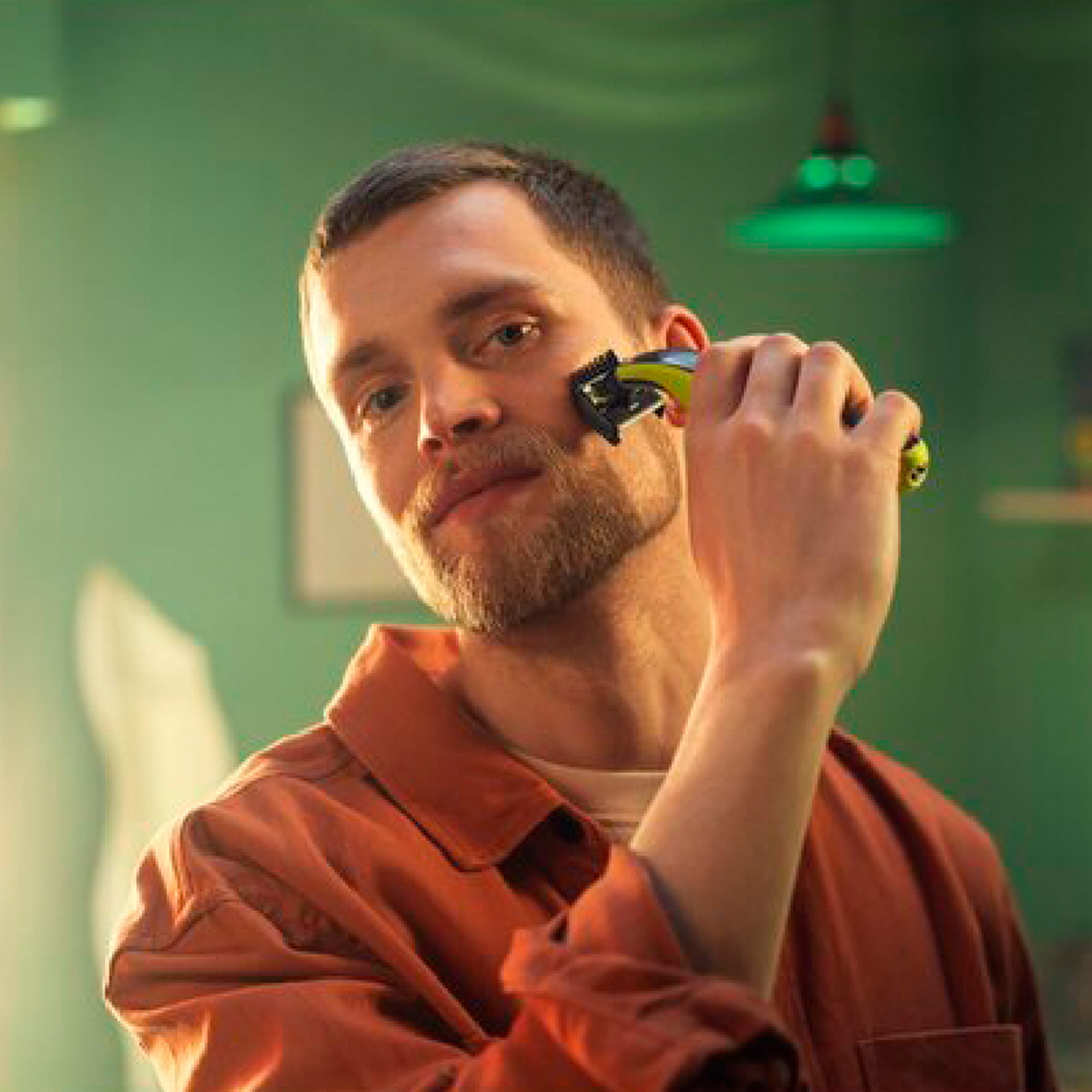 Der OneBlade 360 trimmt, stylt und rasiert jede Haarlänge einfacher als je zuvor. Selbst schwierig zu erreichende Bereiche lassen sich mit weniger Aufwand stylen. Mehrere Schritte und Werkzeuge sind nicht mehr notwendig. OneBlade übernimmt alles. Dank konturfolgender Technologie, doppeltem Schutzsystem und 360-Grad-Klinge.