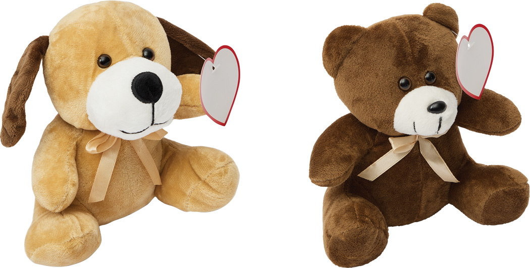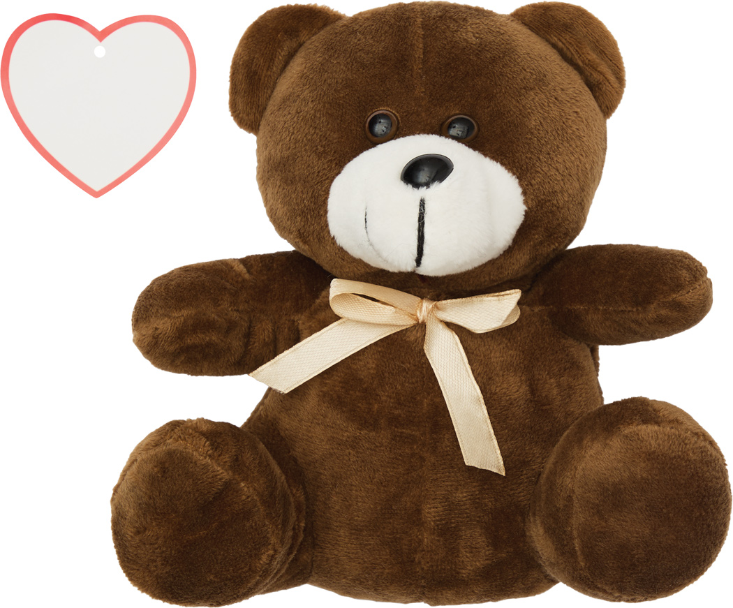 Plüsch-Bär RUBEN: mit weichem Fell und Schleife, in sitzender Position, mit Herz zum Bedrucken