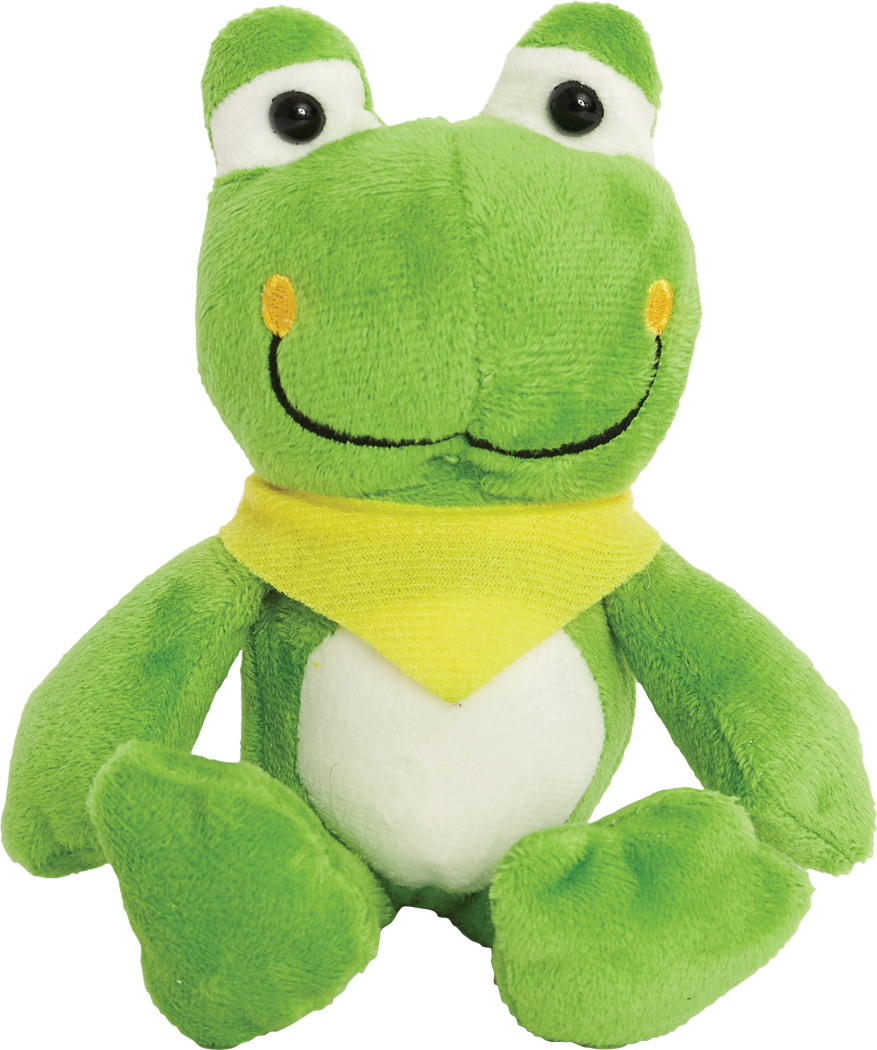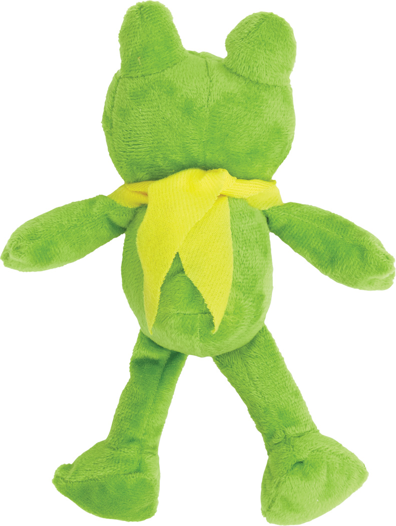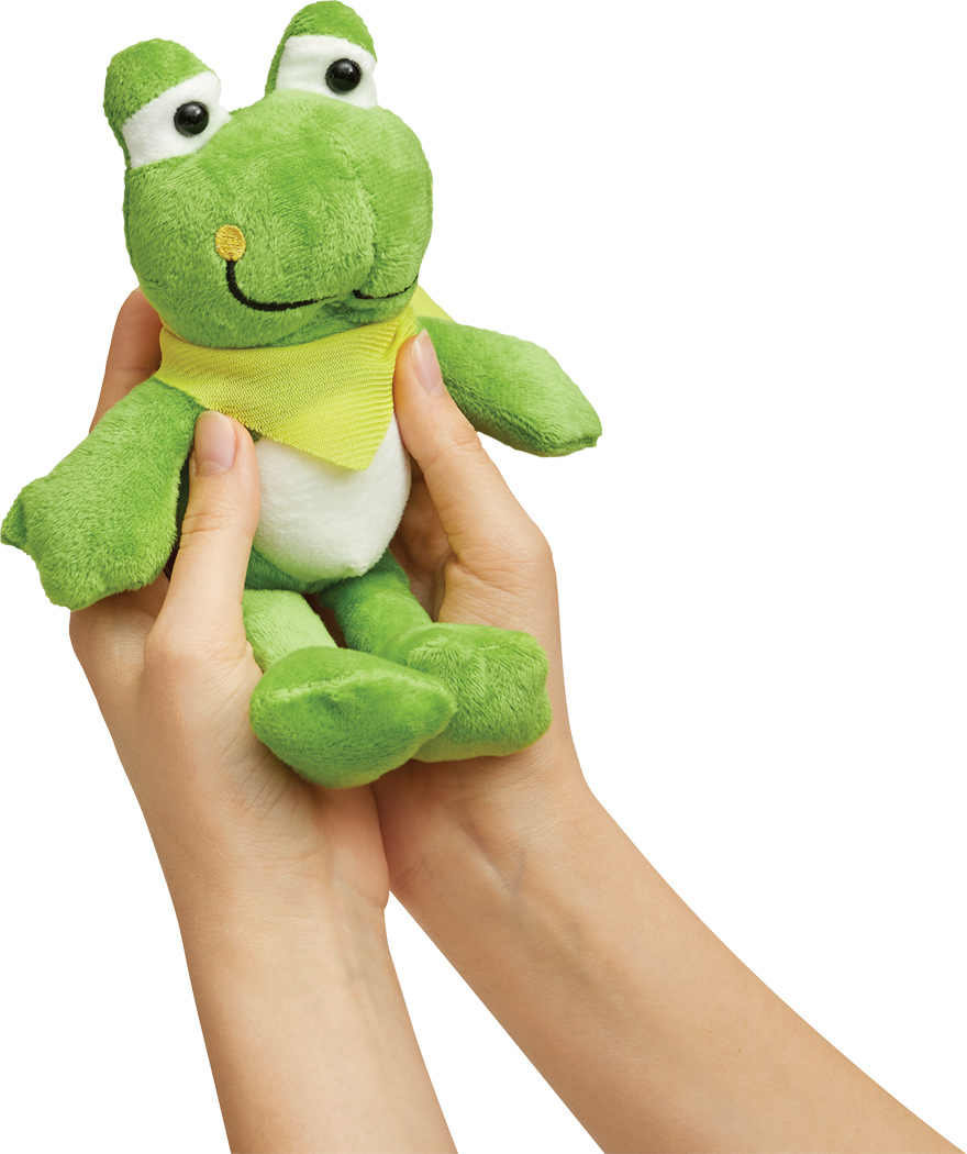 Plüsch-Frosch BERND: mit weichem Fell und gelbem Halstuch (separat gepackt), zum Bedrucken