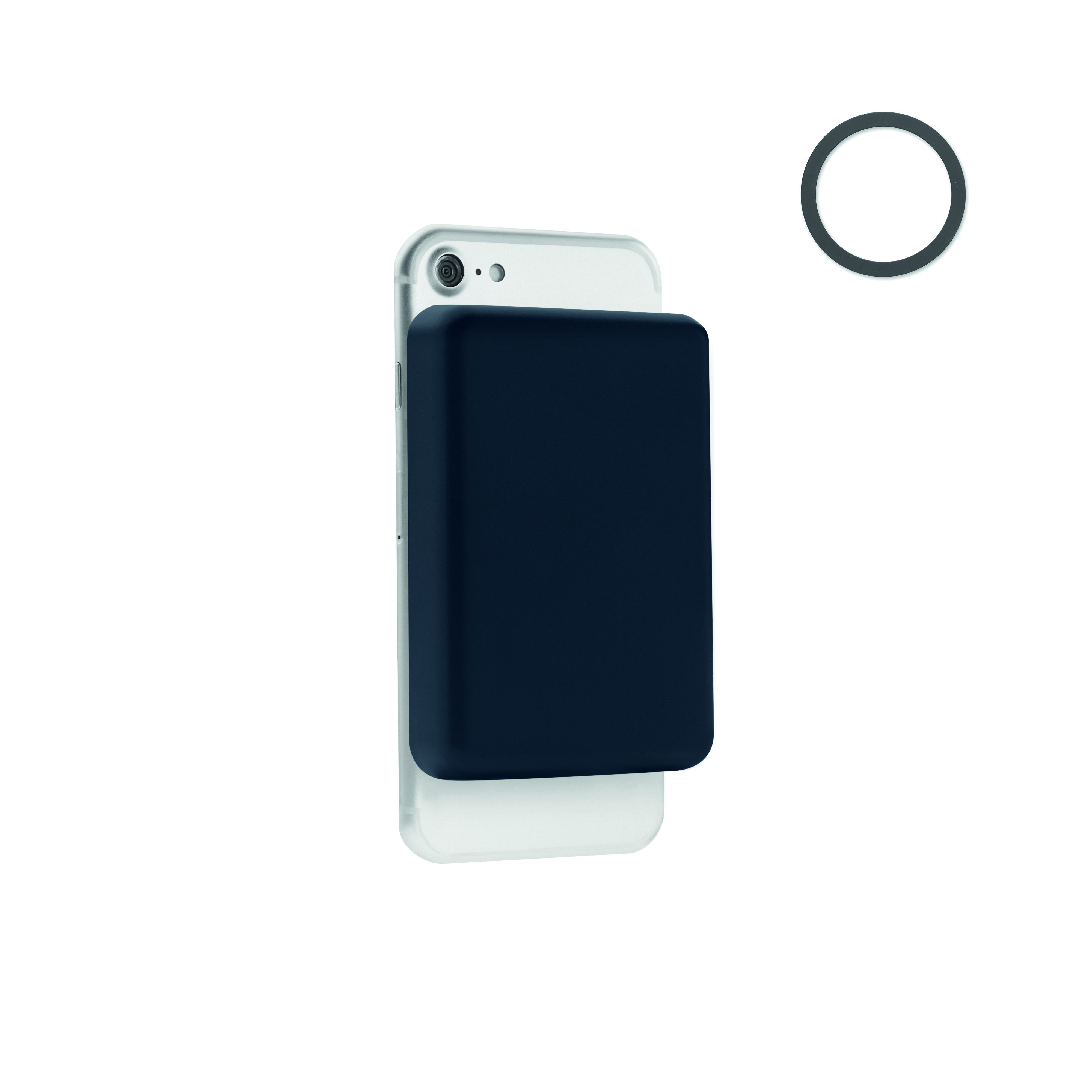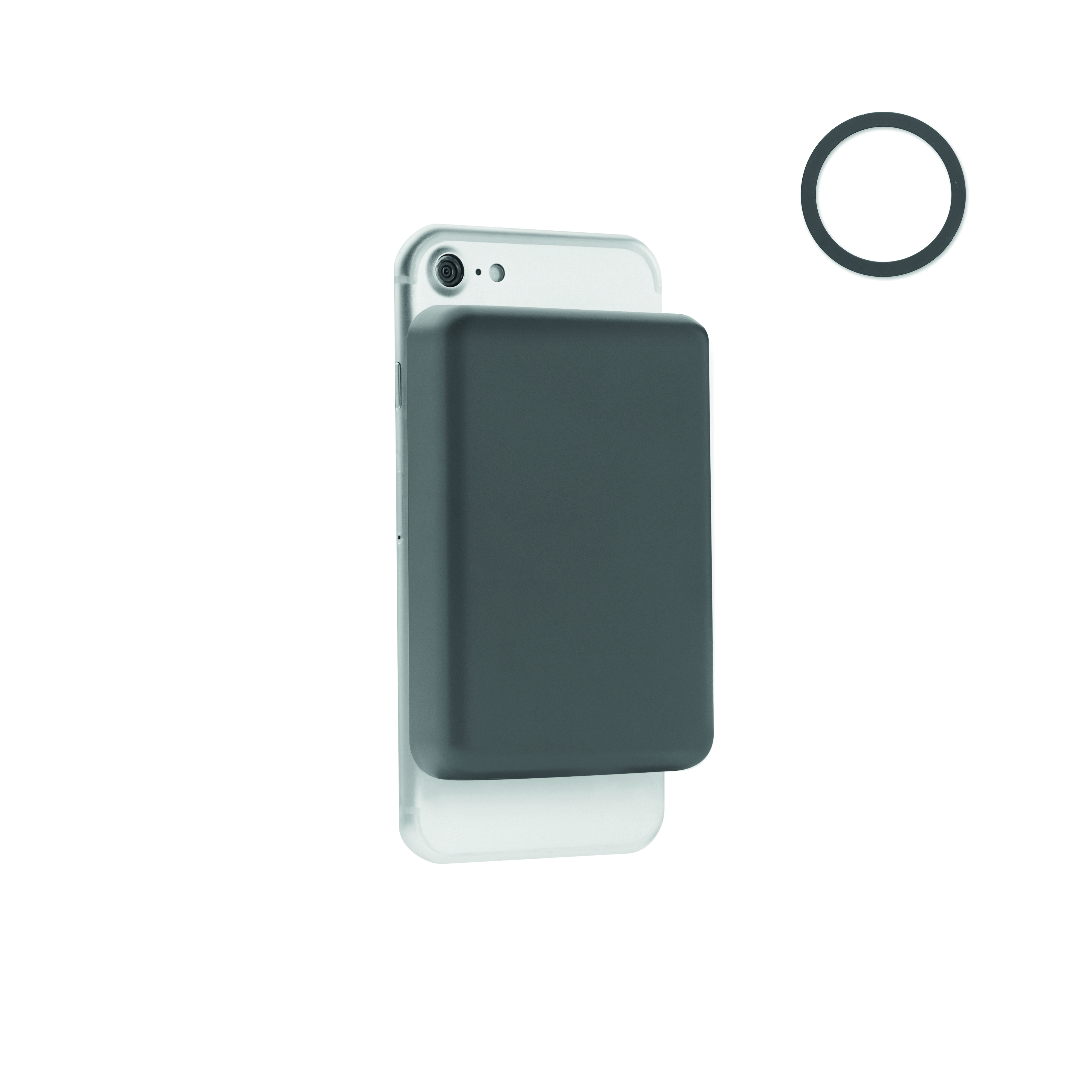 Magnetische Powerbank 5000 mAh mit kabellosem Ladegerät 10 W. Ausgang: DC 9V/1 ,1A (15W), ideal zum schnellen Aufladen. Inkl. magnetischen Metallring zur Unterstützung anderer nicht-magnetischer, wireless aufladbarer Telefone. Eingang / Ausgang: Typ-C.