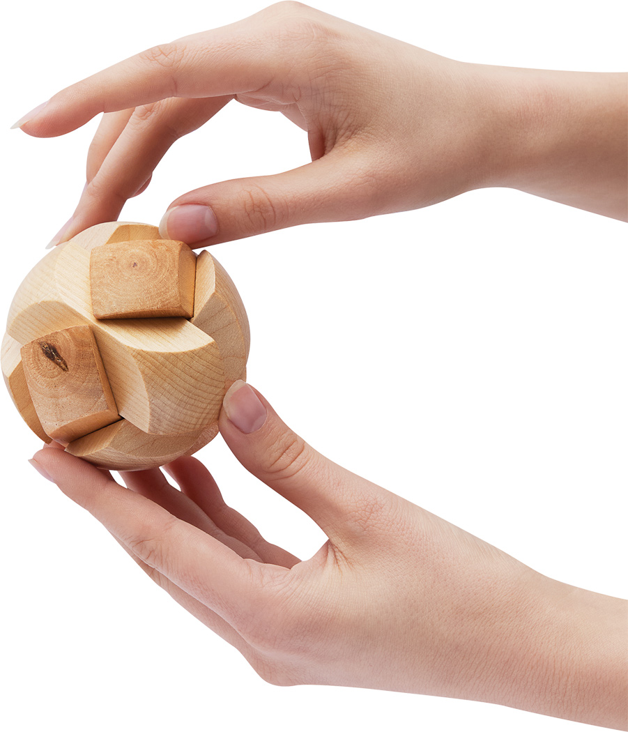 Puzzle-Ball ROUND DEXTERITY: bestehend aus 6 Holzpuzzleteilen, inkl. Holz-Halterung und Anleitung