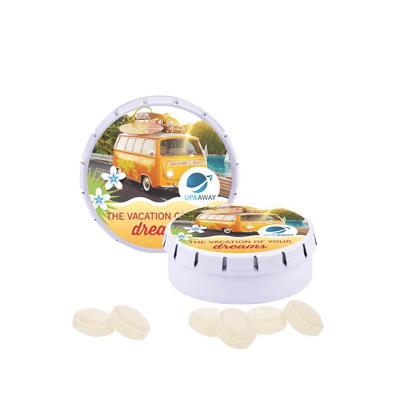 Quick Box XS, Mini Bonbons japanische Minze für Firmenveranstaltungen mit Logo.