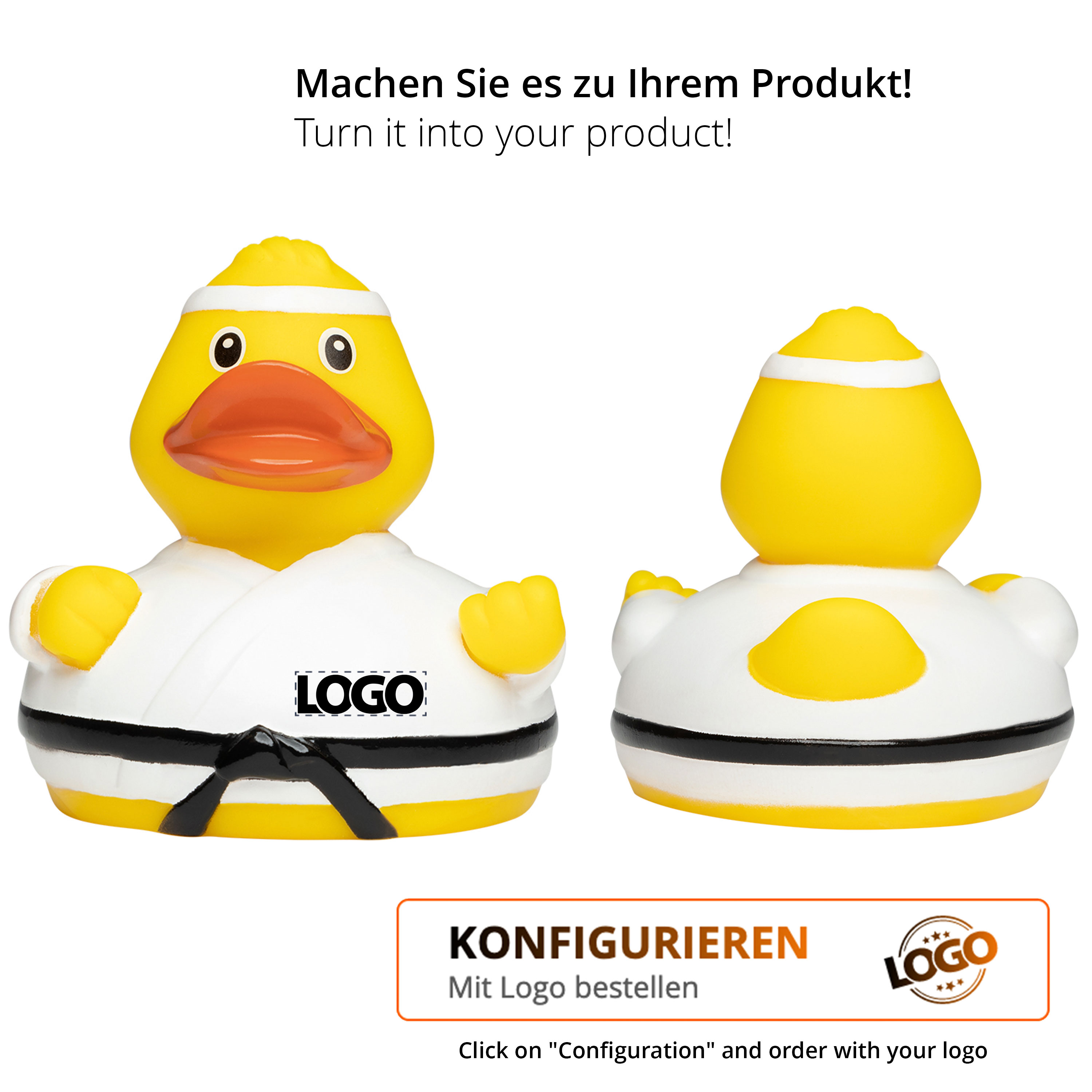 Quietsche-Ente Kampfsport mit Logo für Neukundengewinnung.