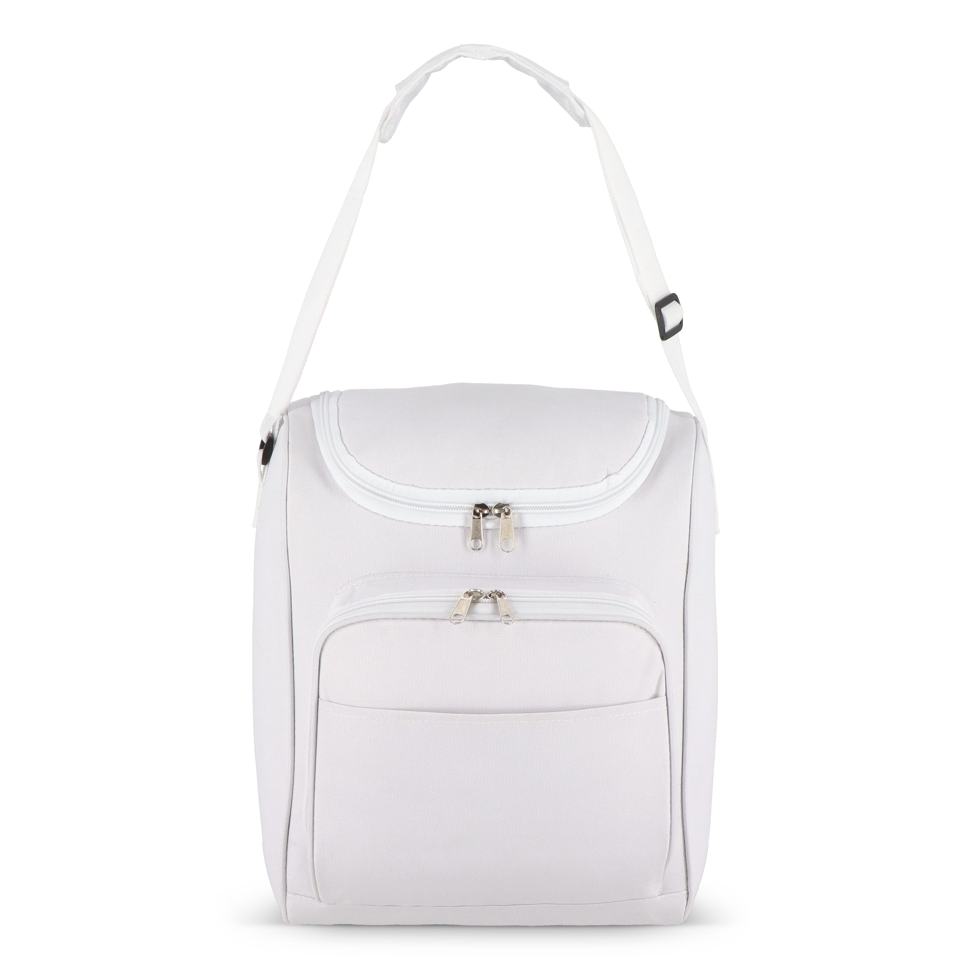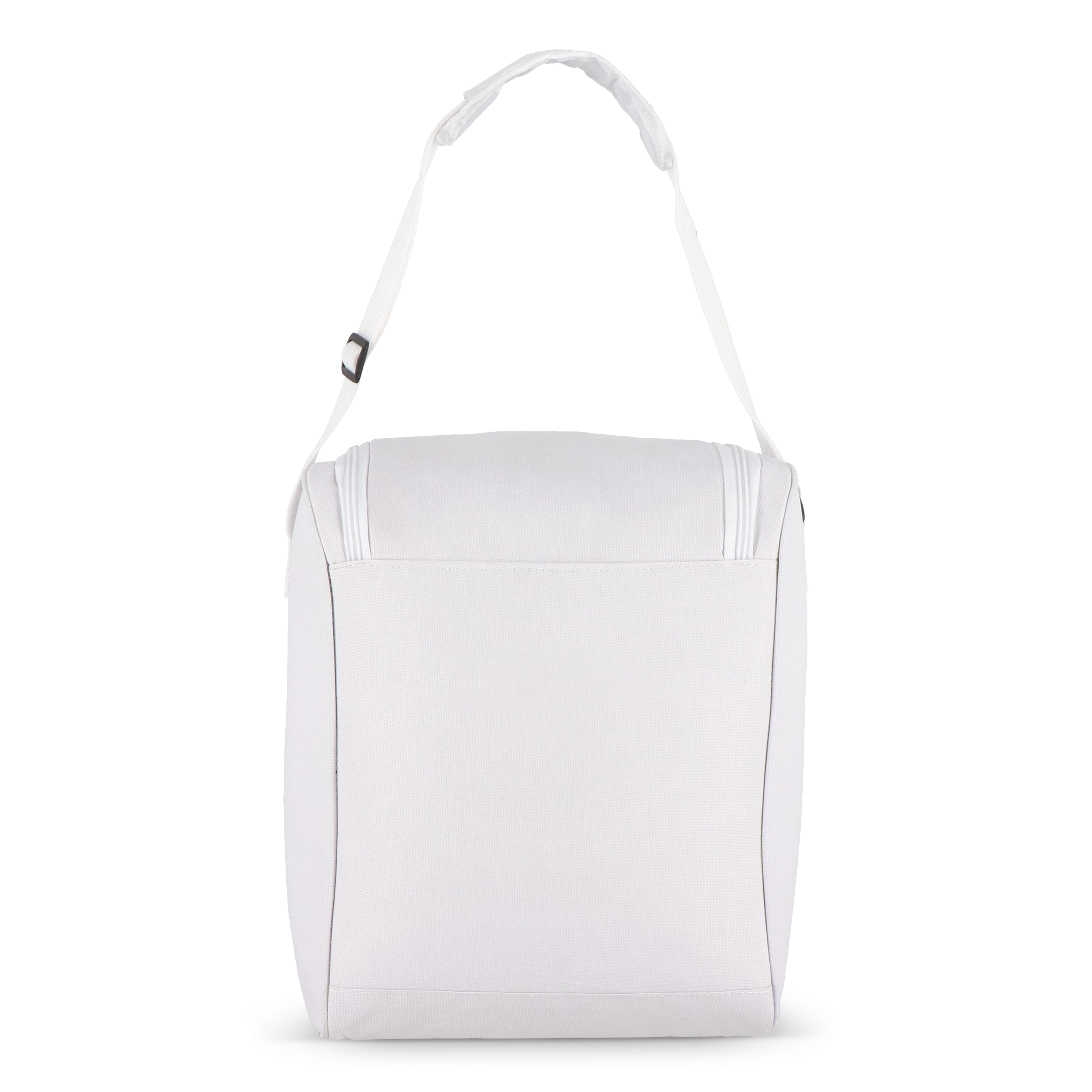 13-Liter-Kühltasche aus recyceltem PET 600D mit einer weiten Öffnung oben. Mit Aluminiumfolie gefüttert und einer Vordertasche mit Reißverschluss. Ideal für Getränkeflaschen, Picknicks und Einkäufe.
