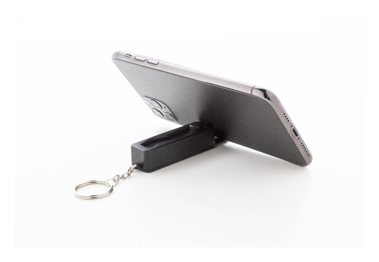 Antistress-Fidget-Spielzeug aus recyceltem ABS als Schlüsselanhänger mit integriertem Handyhalter und Metallring.