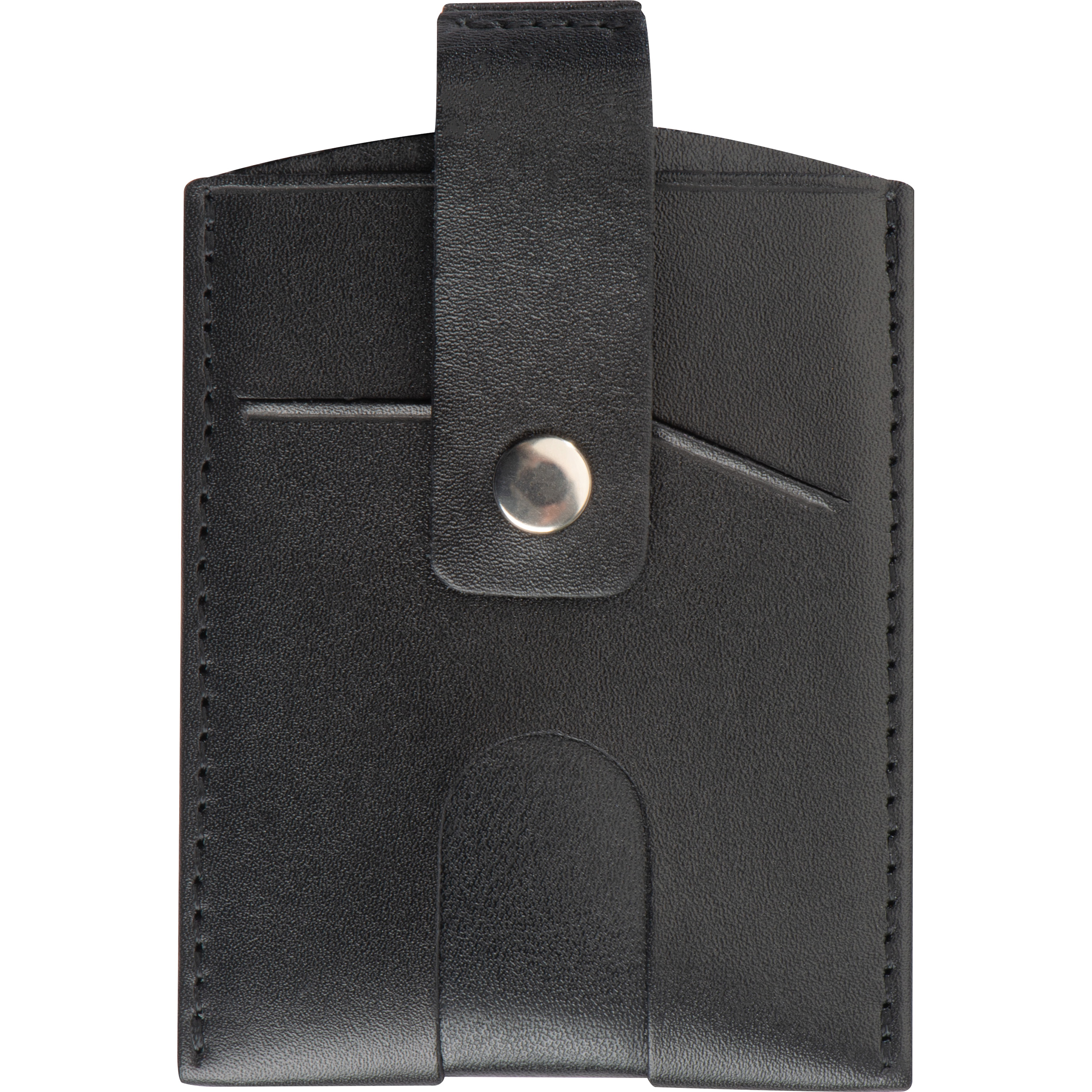 Echt Leder RFID Kreditkartenetui für bis zu 4 Karten. Die Karten lassen sich einfach mit dem Band herausnehmen. Ihre Werbung drucken wir auf das Etui.