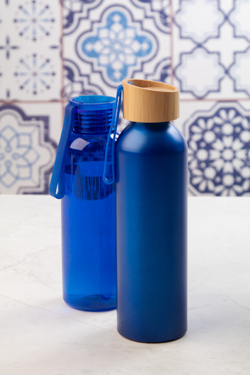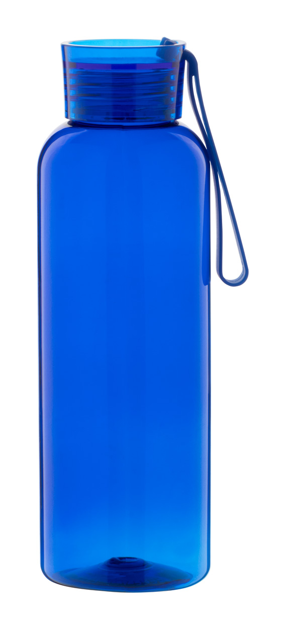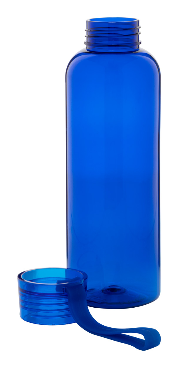 Flasche aus RPET mit farblich abgestimmten Deckel und Silikon-Trageschlaufe. Füllmenge: 500 ml. Nicht geeignet für kohlensäurehaltige Getränke.