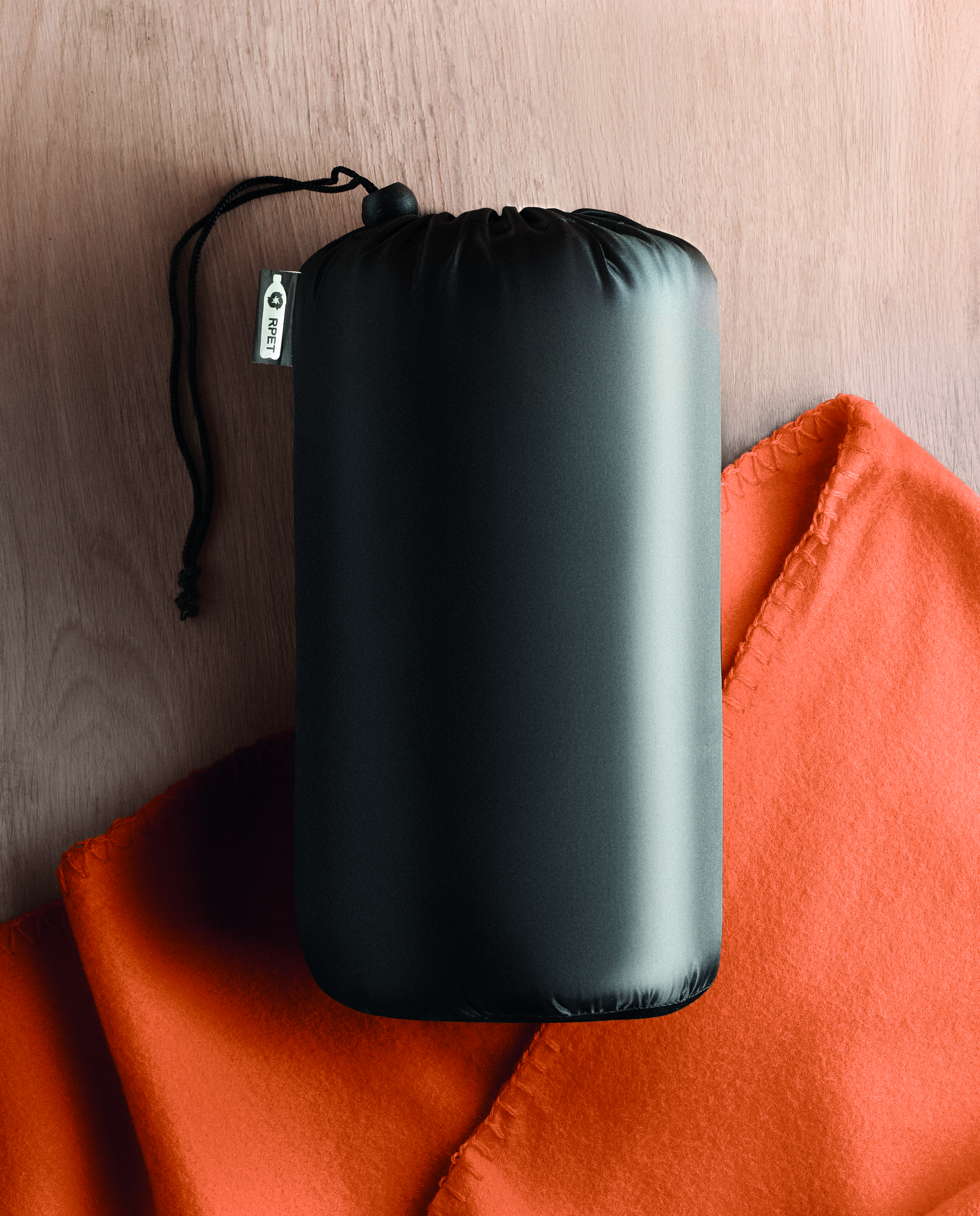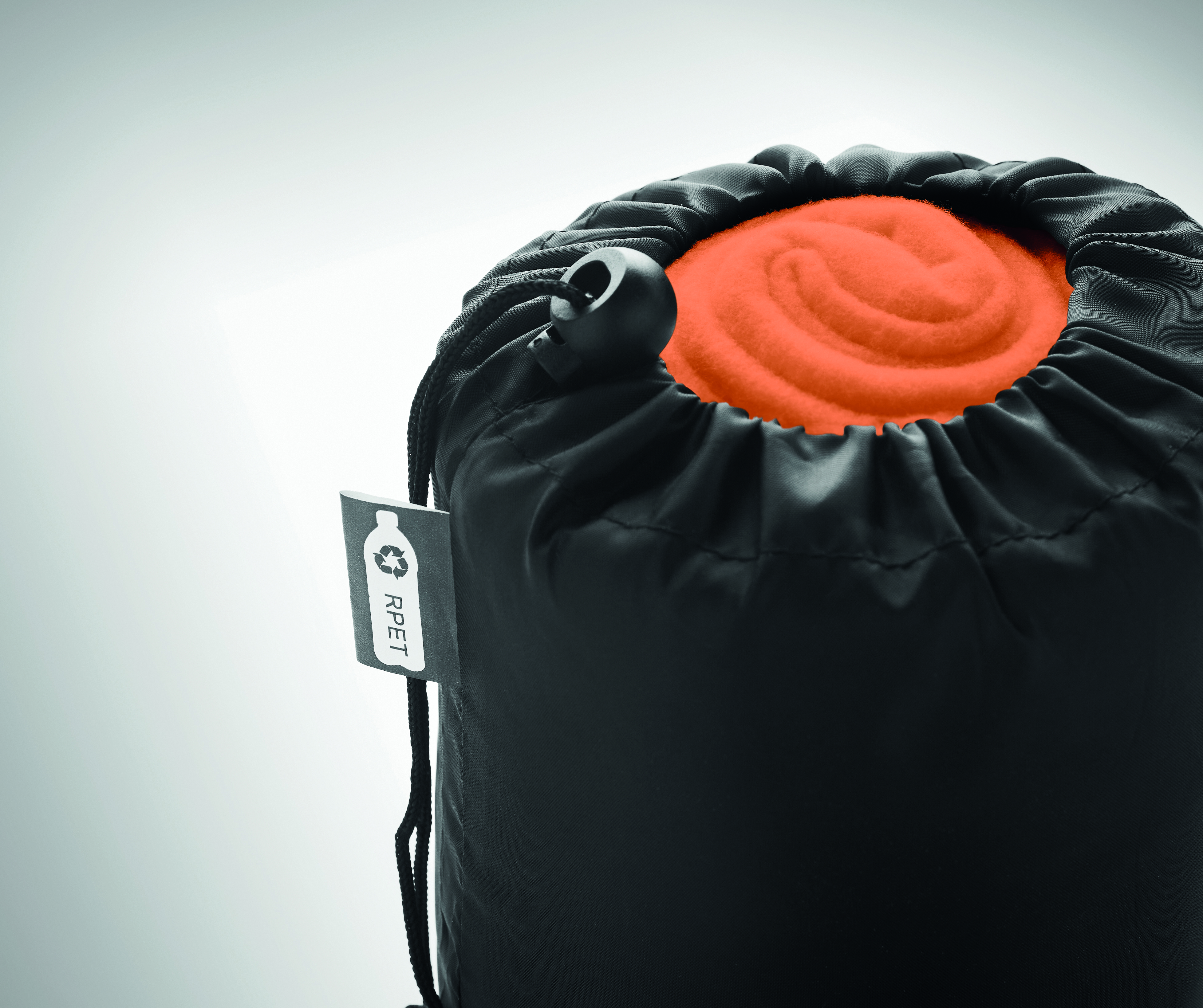 Fleece-Decke aus RPET in einer RPET-Polyester-Reisetasche. 180 g / m² Fleece.