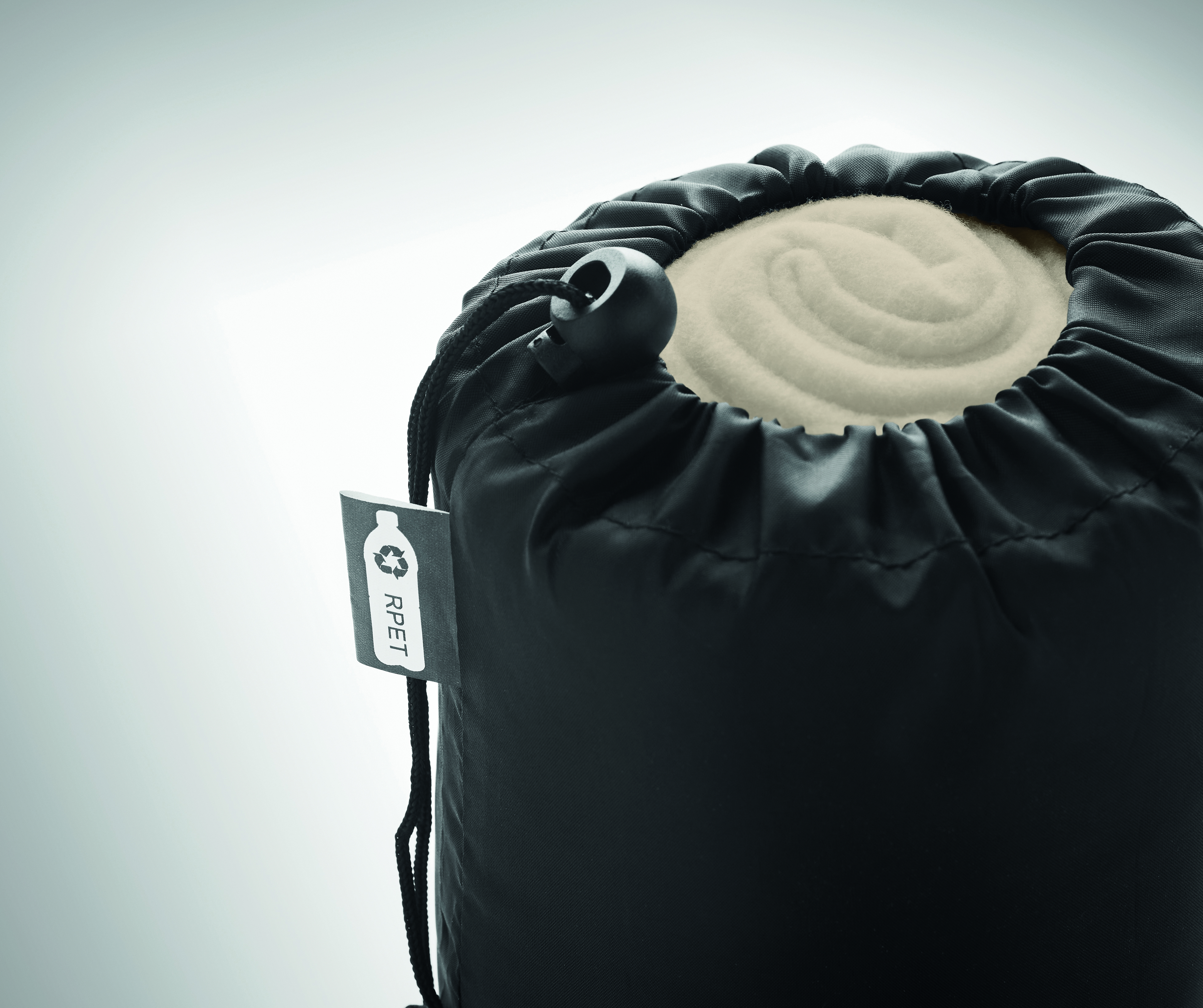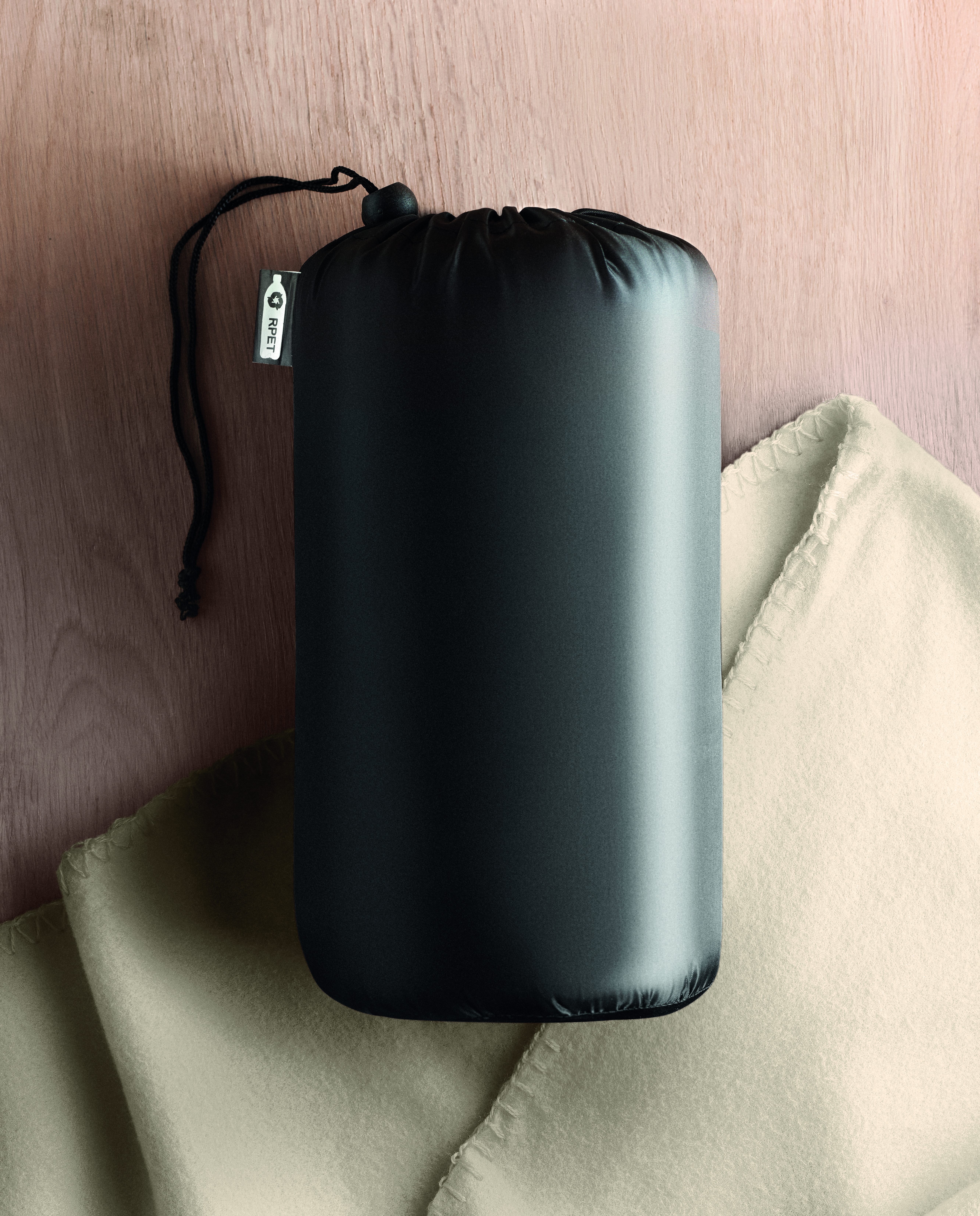 Fleece-Decke aus RPET in einer RPET-Polyester-Reisetasche. 180 g / m² Fleece.