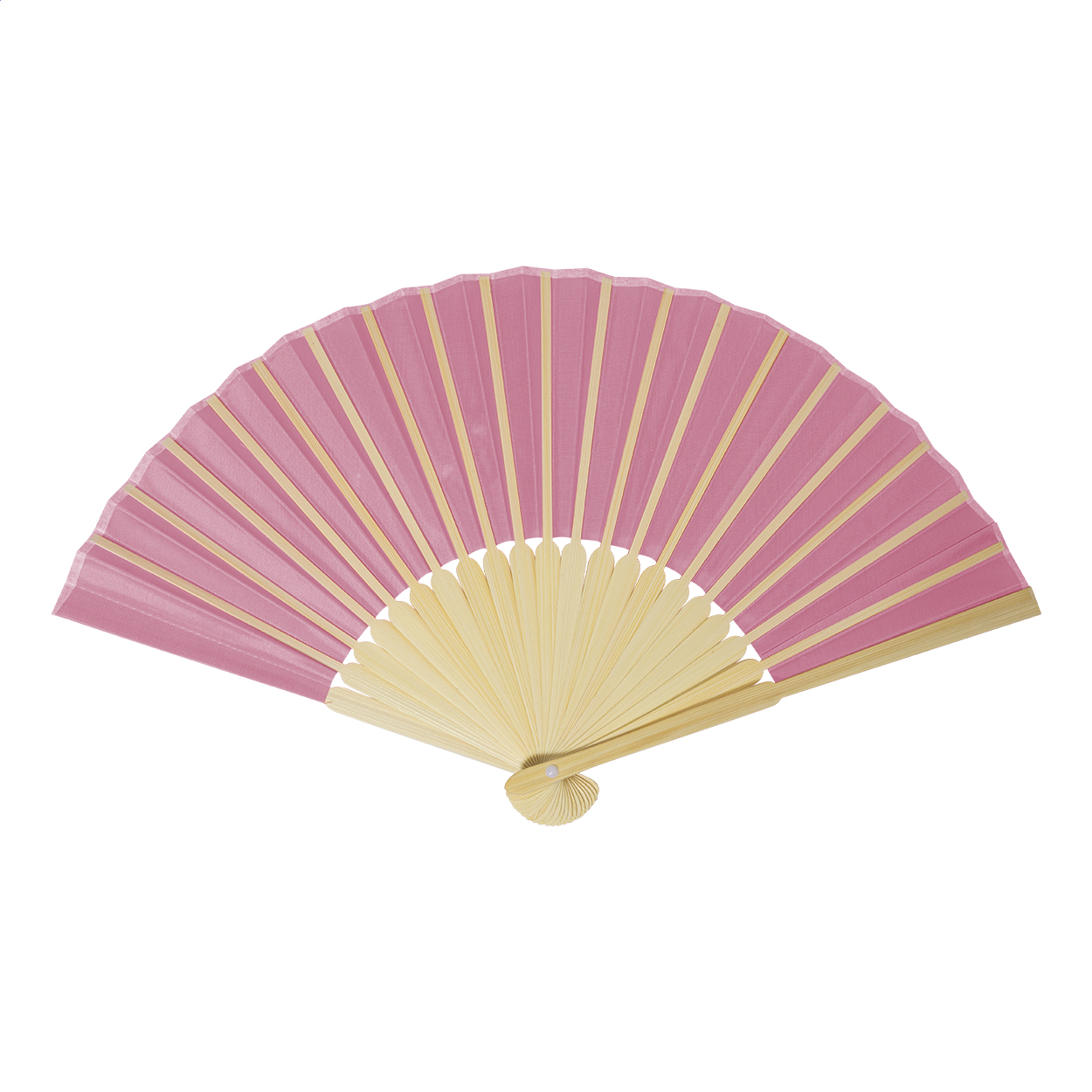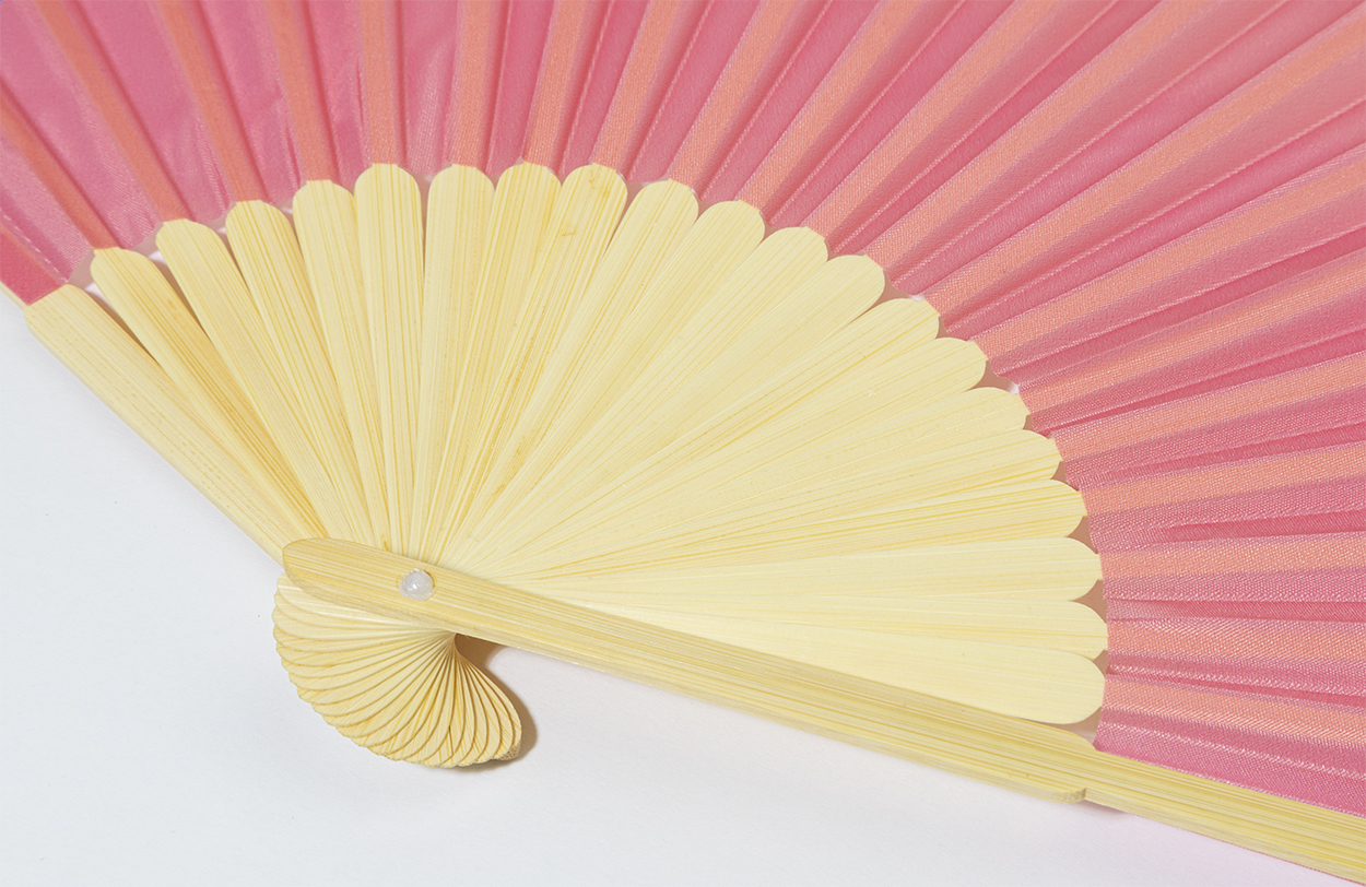 Handfächer aus RPET-Polyester mit Bambusspeichen.