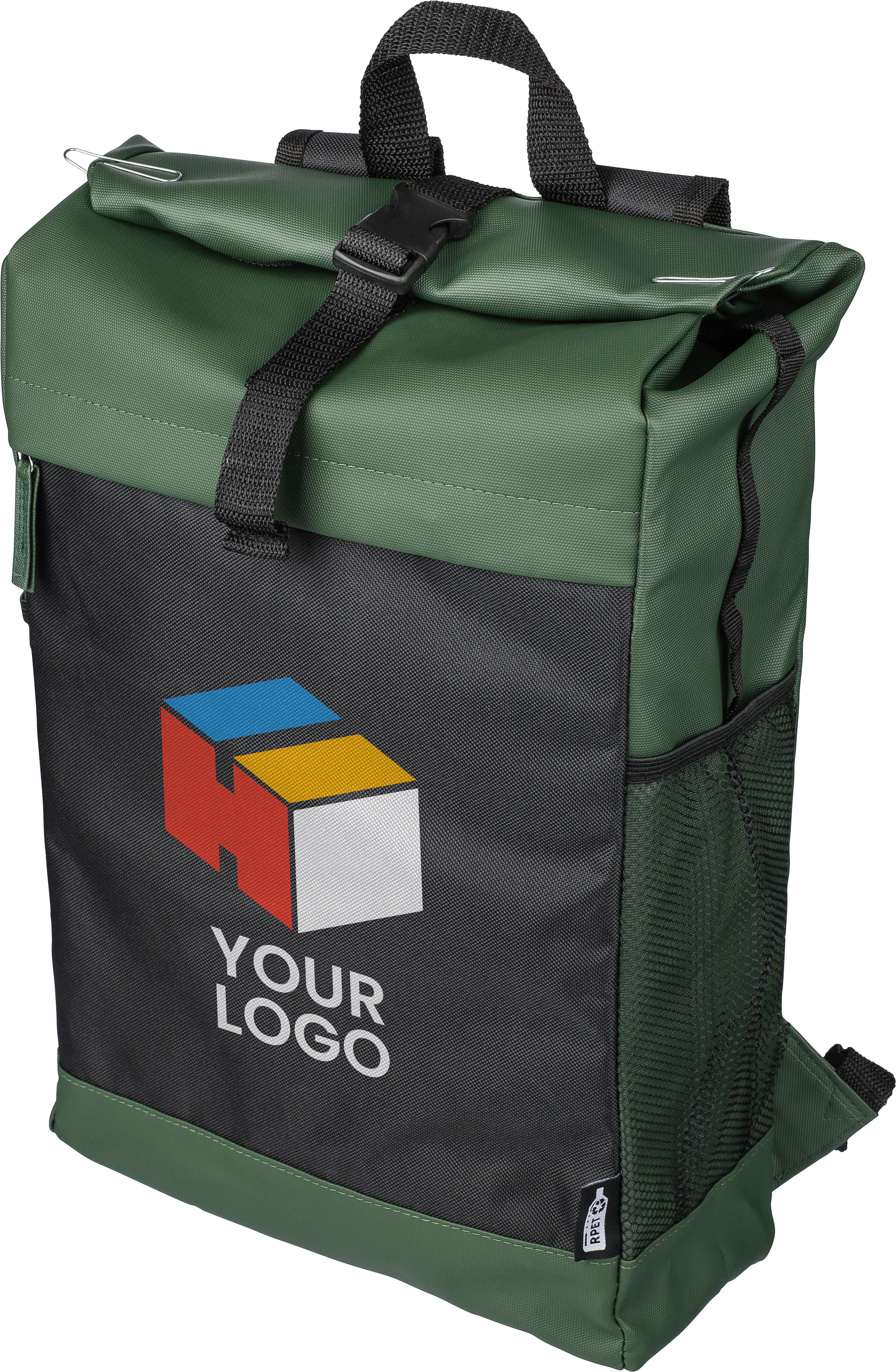 RPET-Polyester (600D) Rolltop-Rucksack Yani als Werbegeschenk mit Logo.