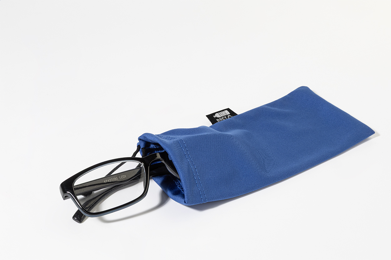 Sonnenbrillenetui aus RPET-Polyester mit Kordelzugverschluss.