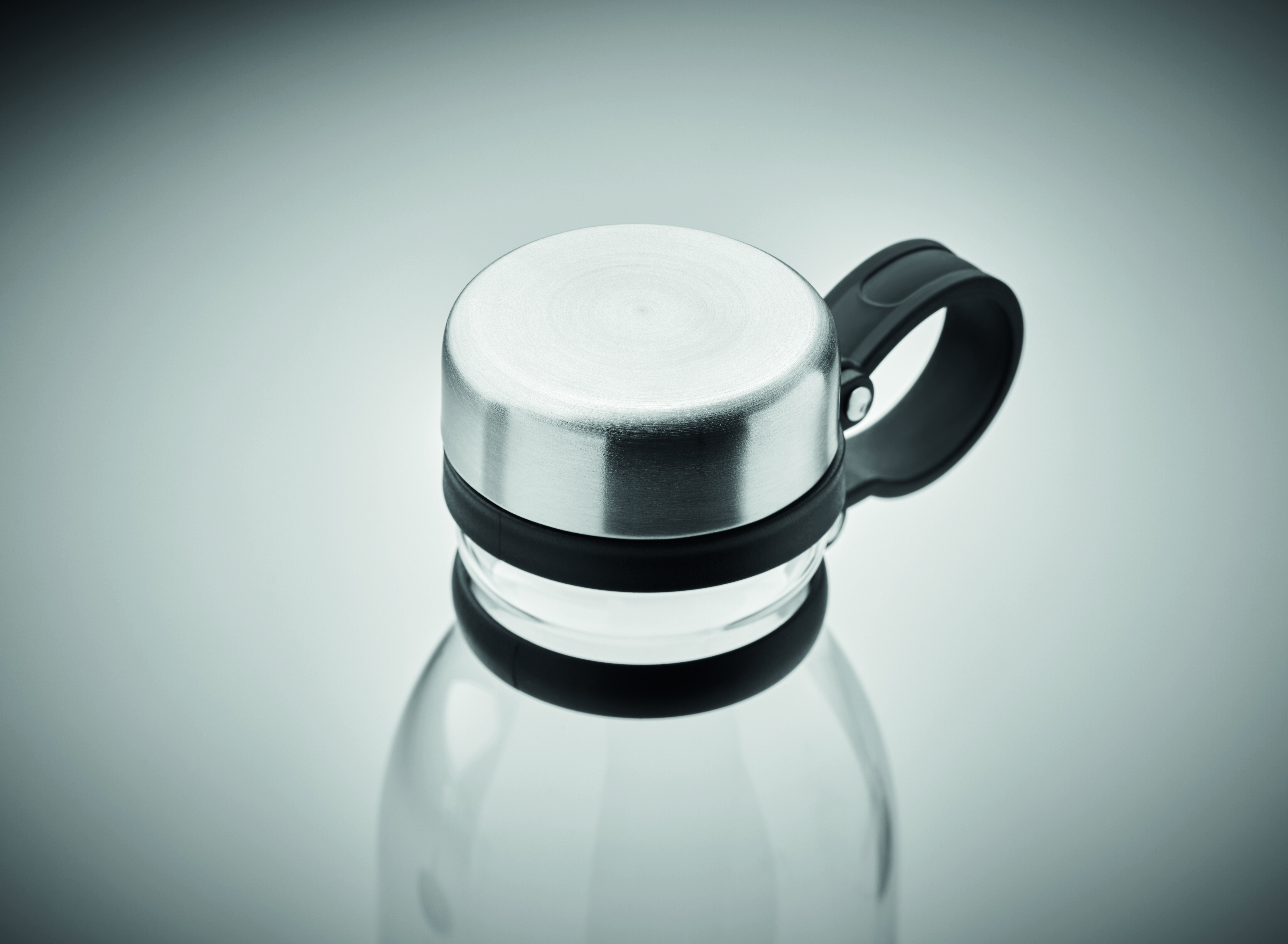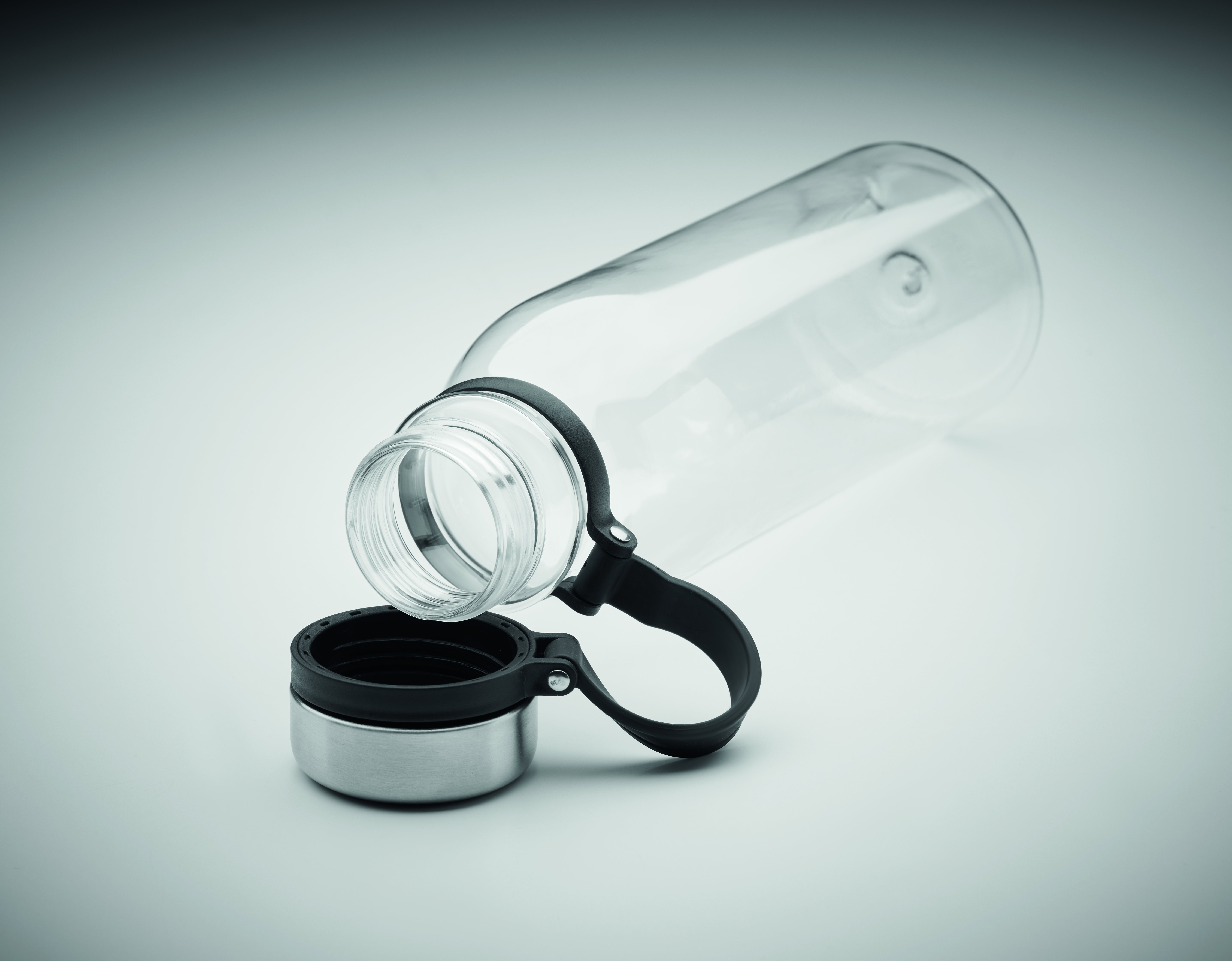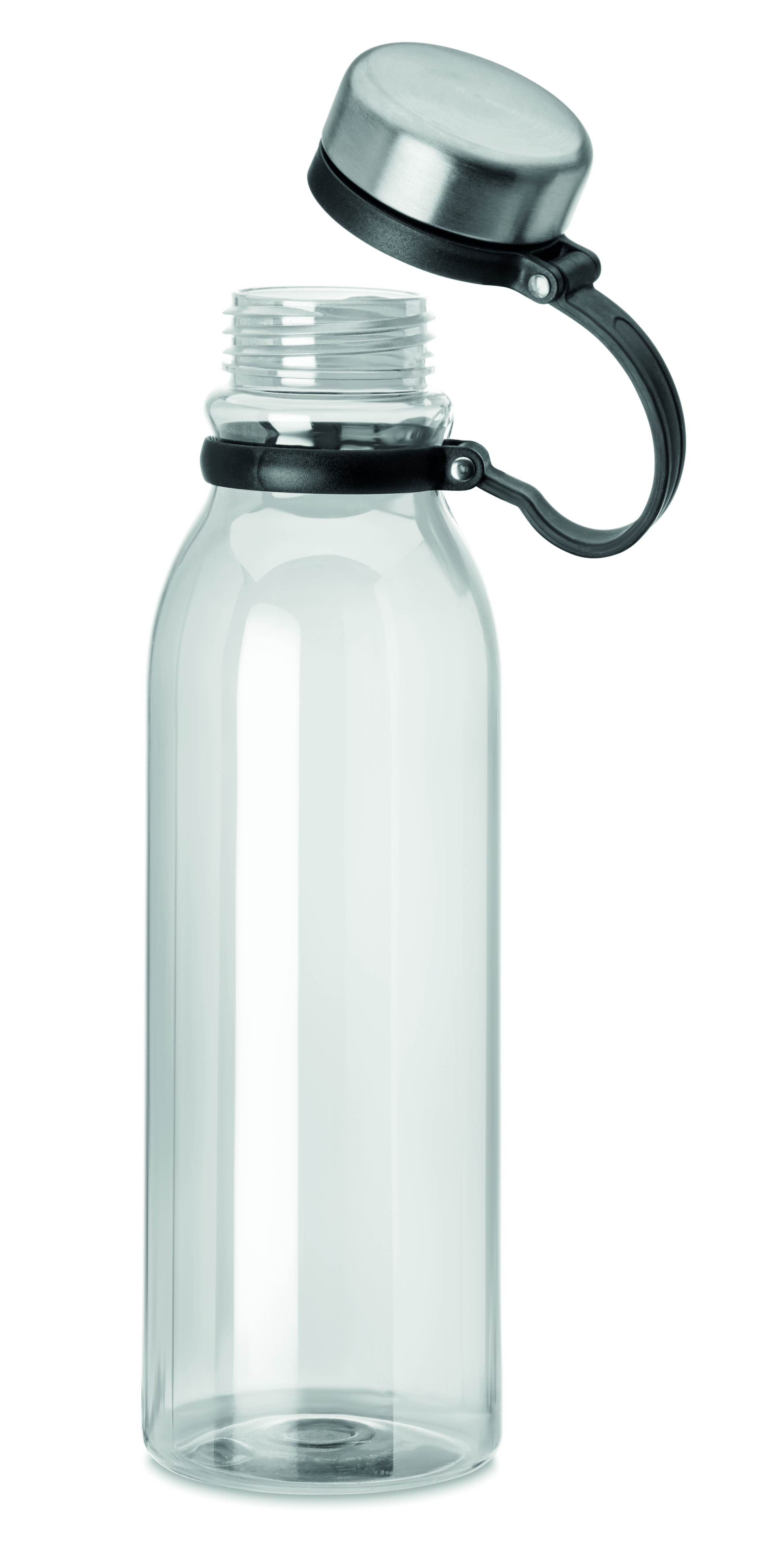 Trinkflasche aus RPET mit Deckel aus Edelstahl und TPR Schlaufe zum praktischen Transport. BPA frei. Füllmenge: 780 ml. Nicht geeignet für kohlensäurehaltige Getränke. Auslaufsicher.