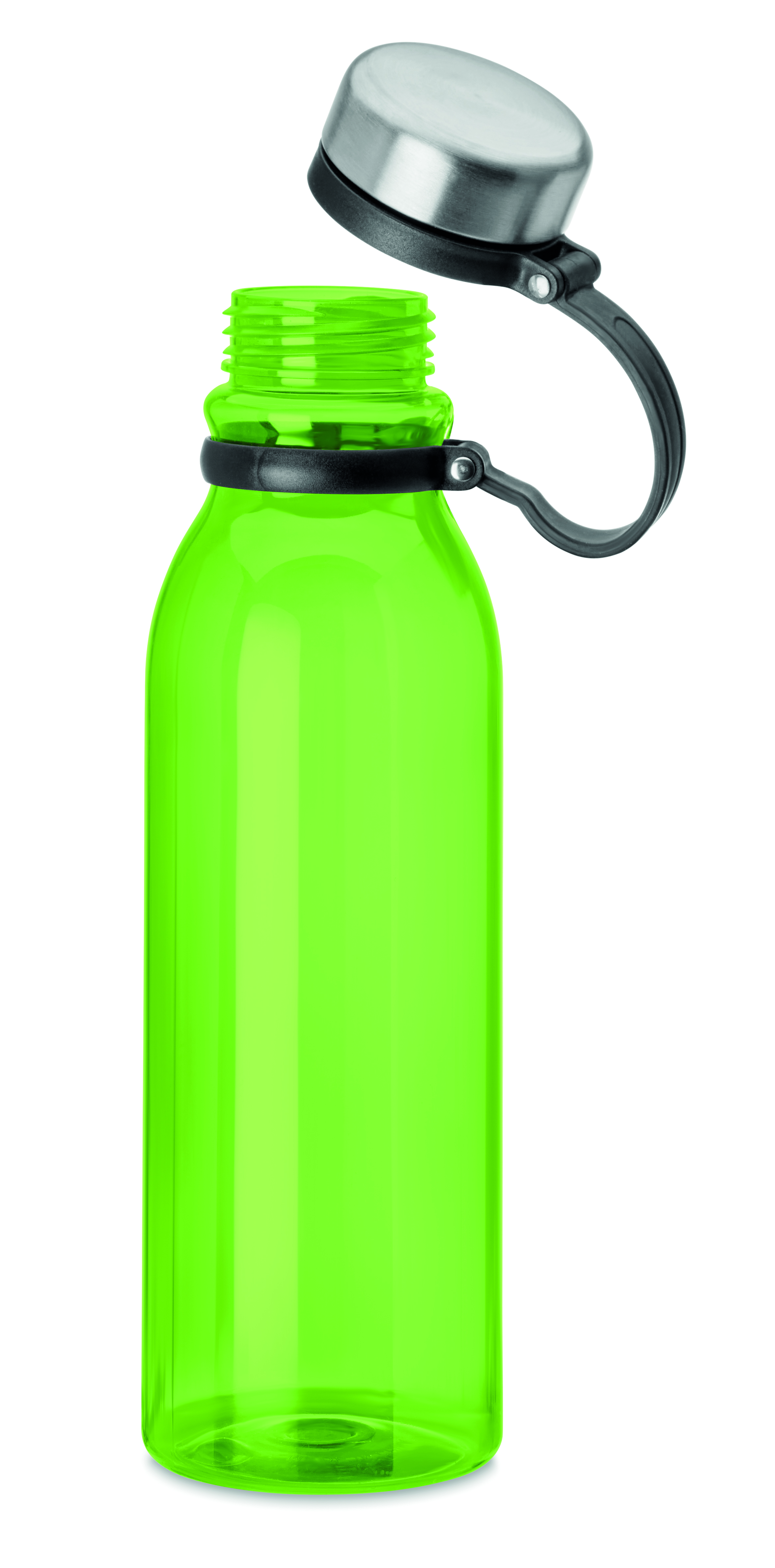 Trinkflasche aus RPET mit Deckel aus Edelstahl und TPR Schlaufe zum praktischen Transport. BPA frei. Füllmenge: 780 ml. Nicht geeignet für kohlensäurehaltige Getränke. Auslaufsicher.