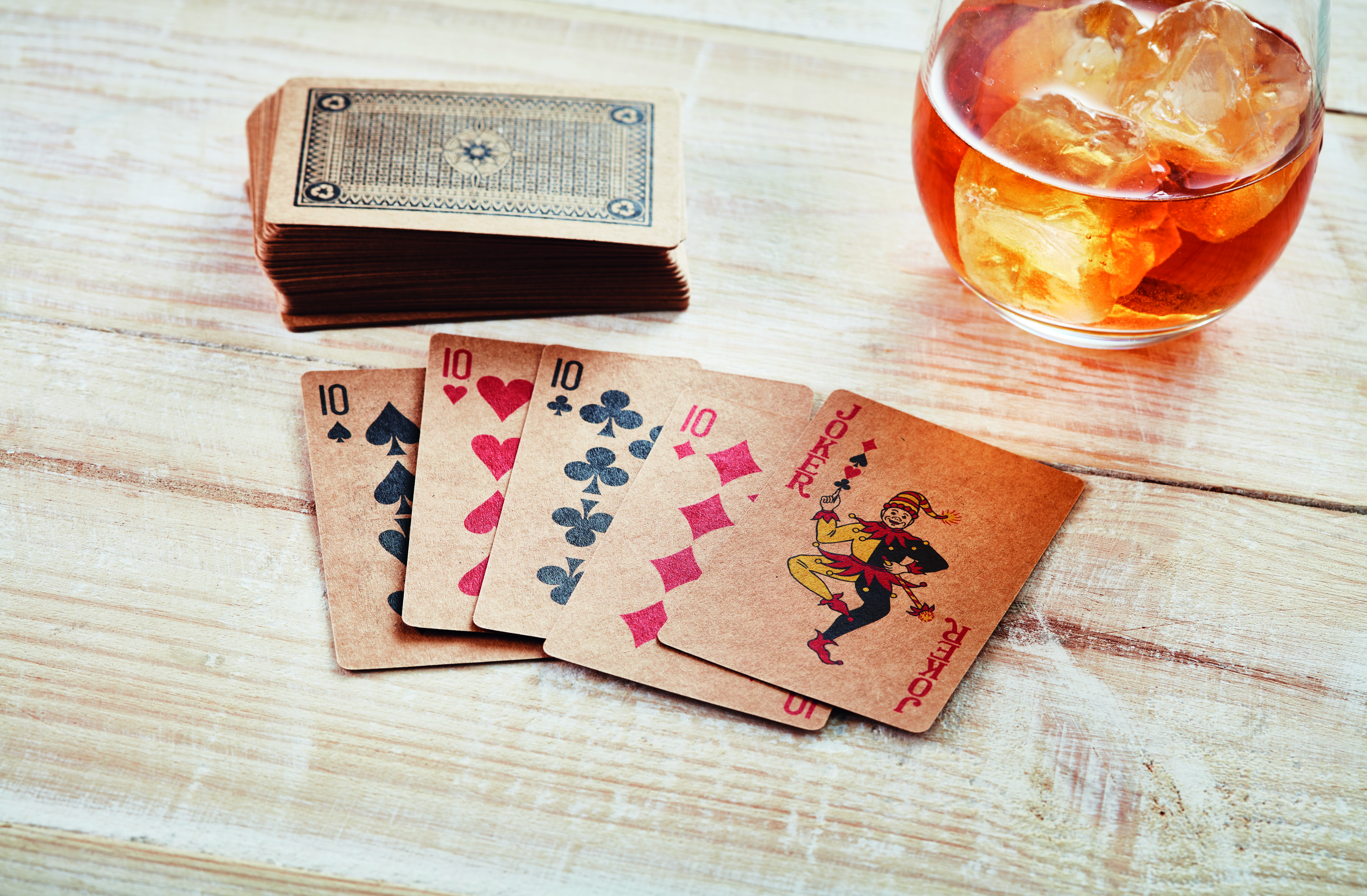 Recycelte Spielkarten ARUBA + mit Firmenlogo für Werbeaktionen.