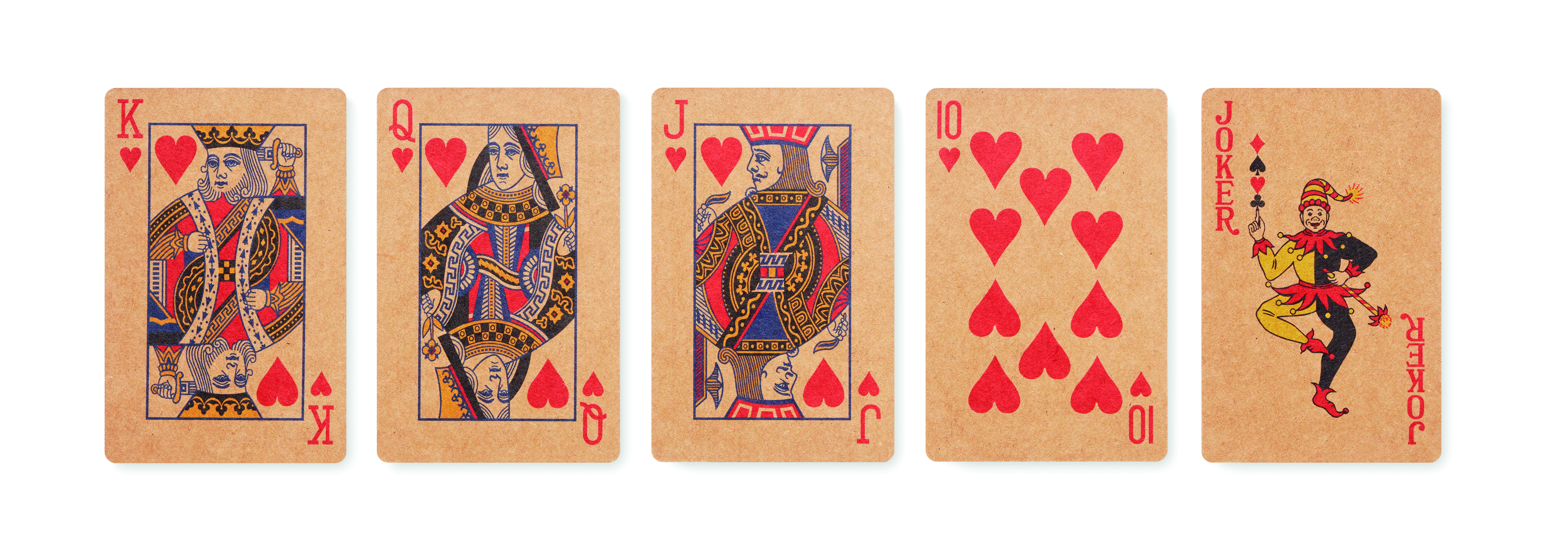 Klassische Spielkarten in einer Pappschachtel. Alles aus recyceltem Papier. 54 Karten.