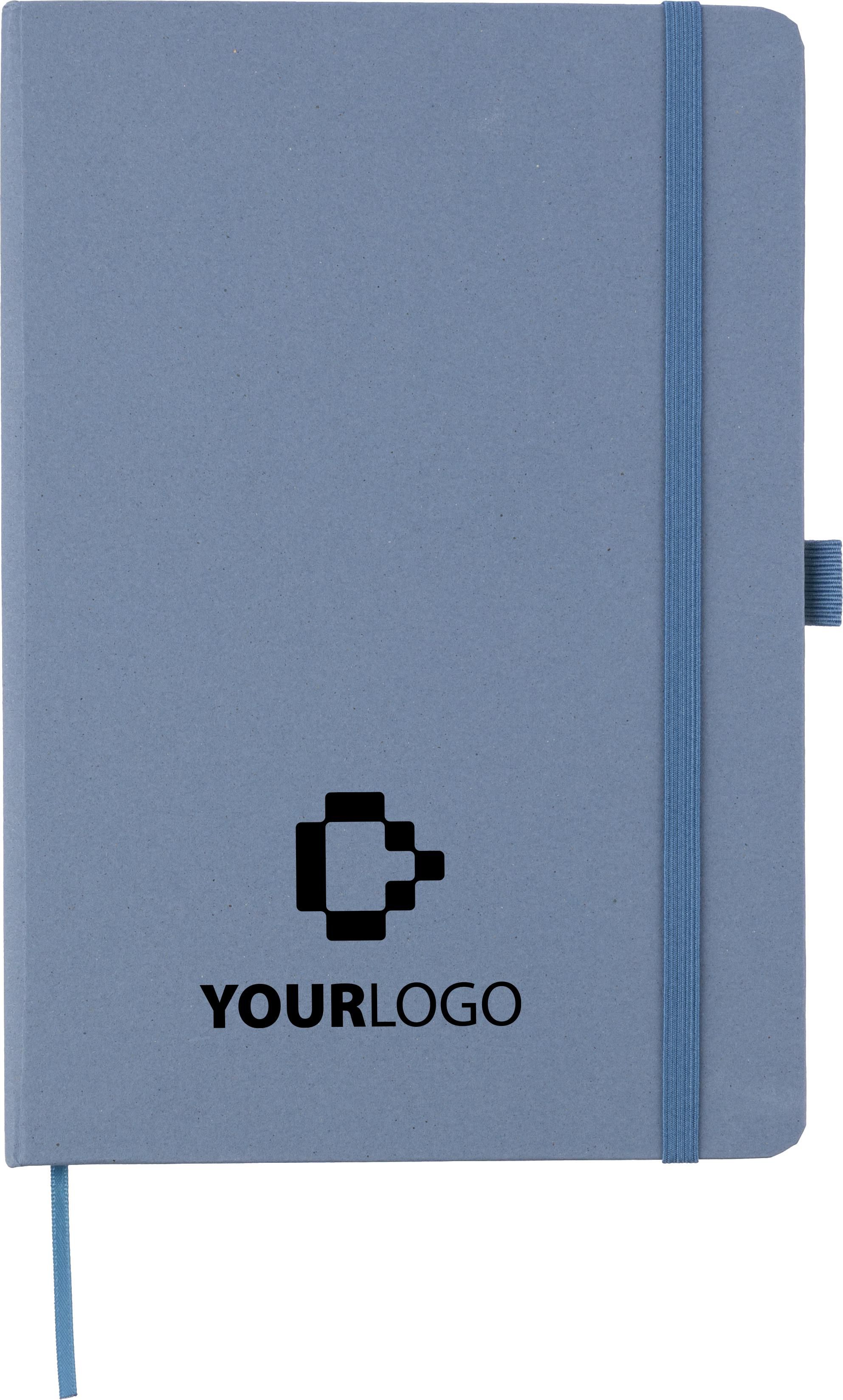 Recycelter Bioabfall und Karton-Notizbuch A5 Gertrud Original als Kundenpräsent mit Firmenlogo.