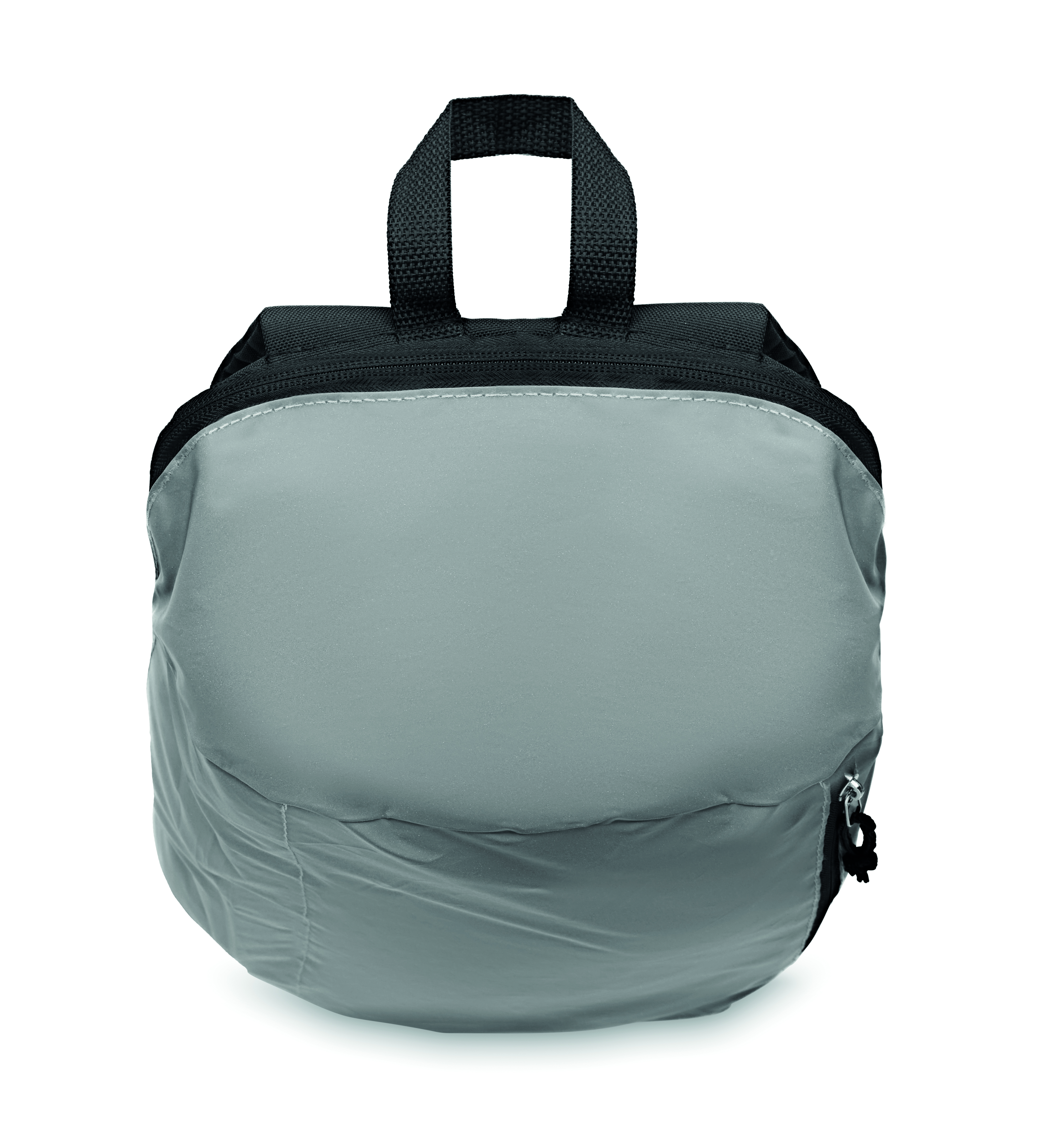 Rucksack mit Front aus hoch reflektierendem Polyester. Fronttasche mit Reißverschluss. Gepolsterte Rückseite. 600D Polyester.