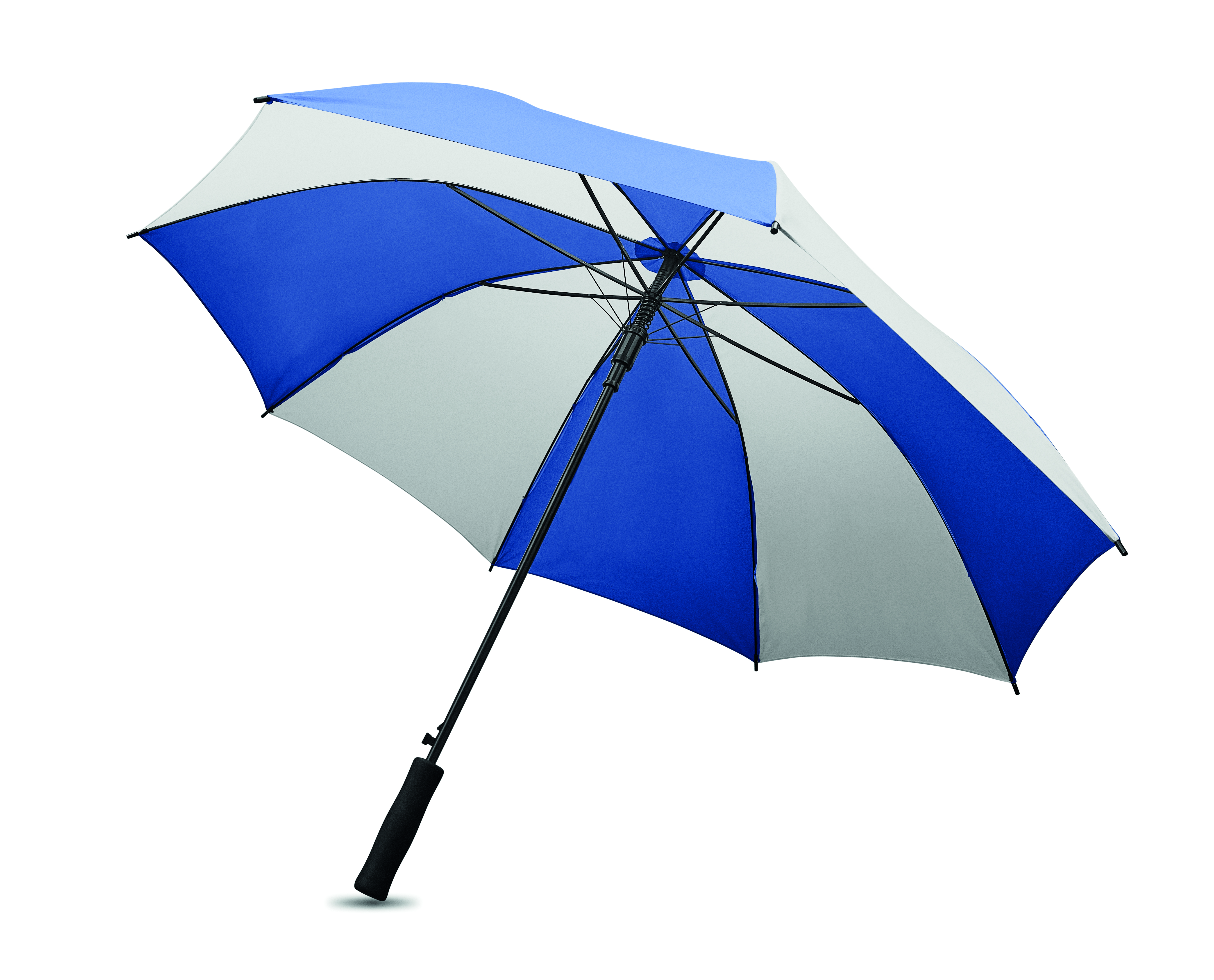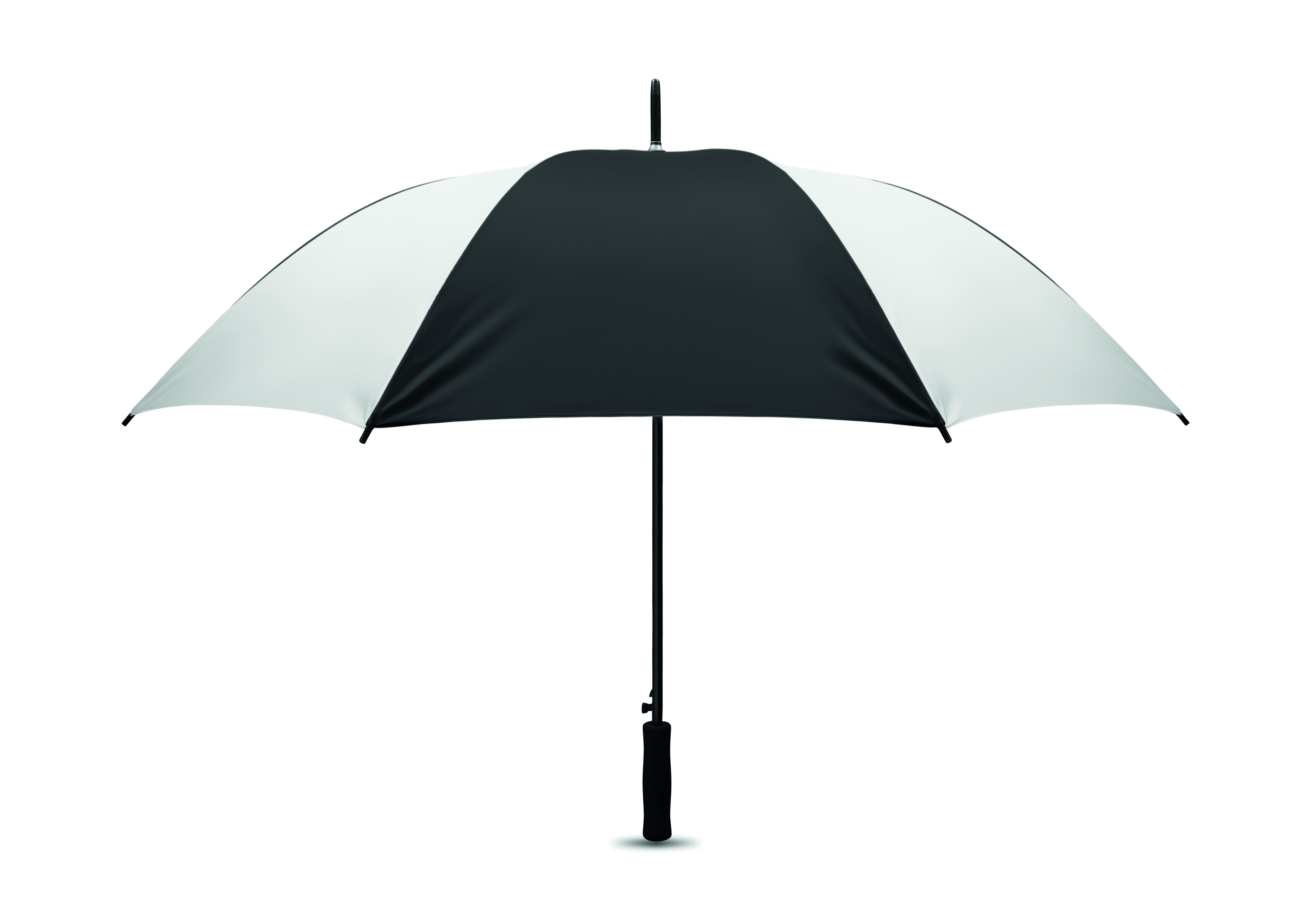27'' Regenschirm aus 190T Pongee. Stock und Schienen aus schwarz überzogenem Metall, Spitzen aus schwarzem Kunststoff. Schwarzer EVA Griff. Automatische Öffnung, manuelle Schließung.