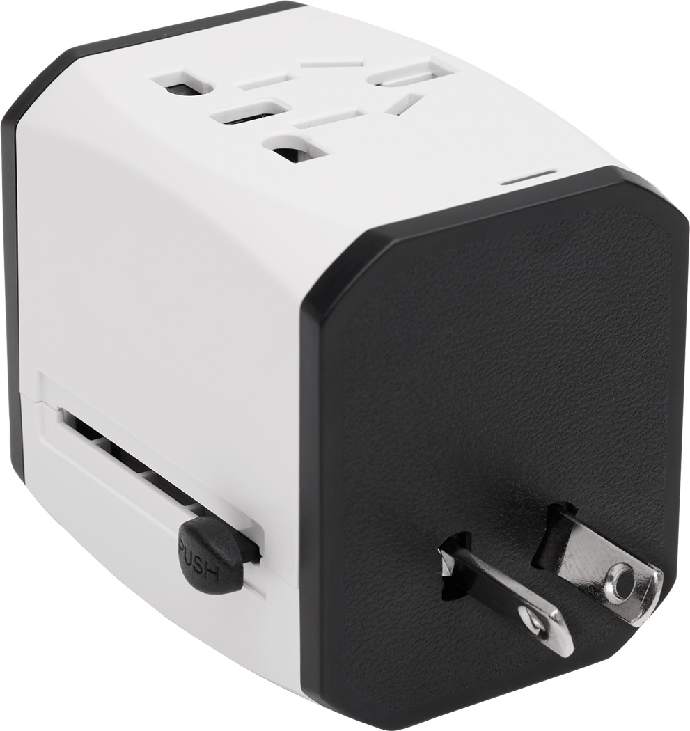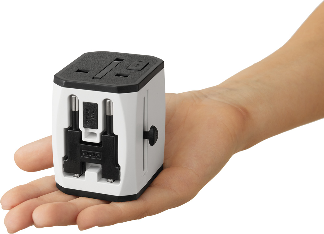Reiseadapter TRAVEL POWER mit Logo für Messen und Events.