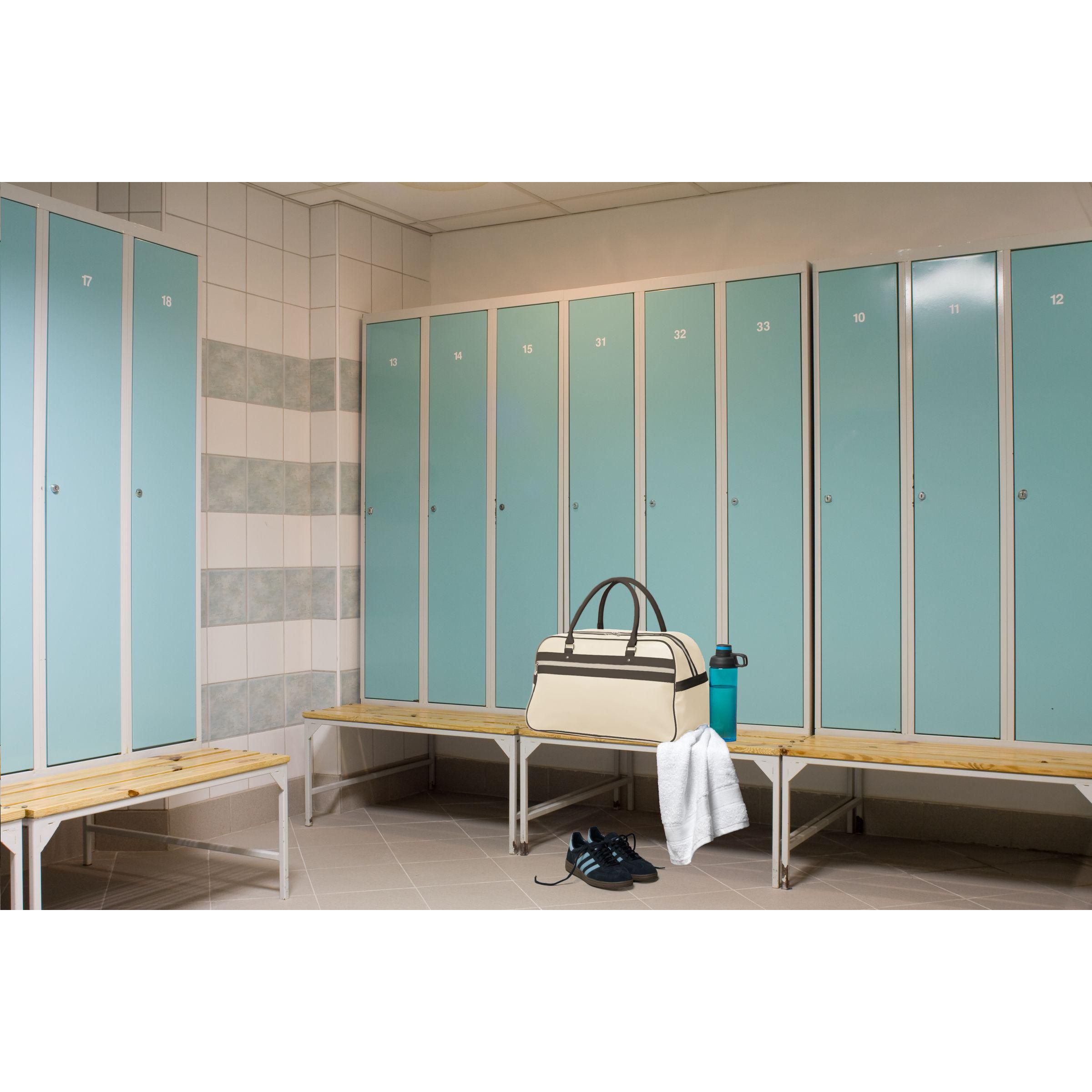 PVC/PU Sporttasche im 70er Jahre-Look mit gefütterter Innenseite, Hauptfach und Reißverschlussfach, 2 stabilen Handgriffen, Einlegeboden und Schutznoppen. Stilvoll verarbeitet mit hochwertigen Materialien, die eine extra lange Lebensdauer garantieren. Fassungsvermögen ca. 21,5 Liter.