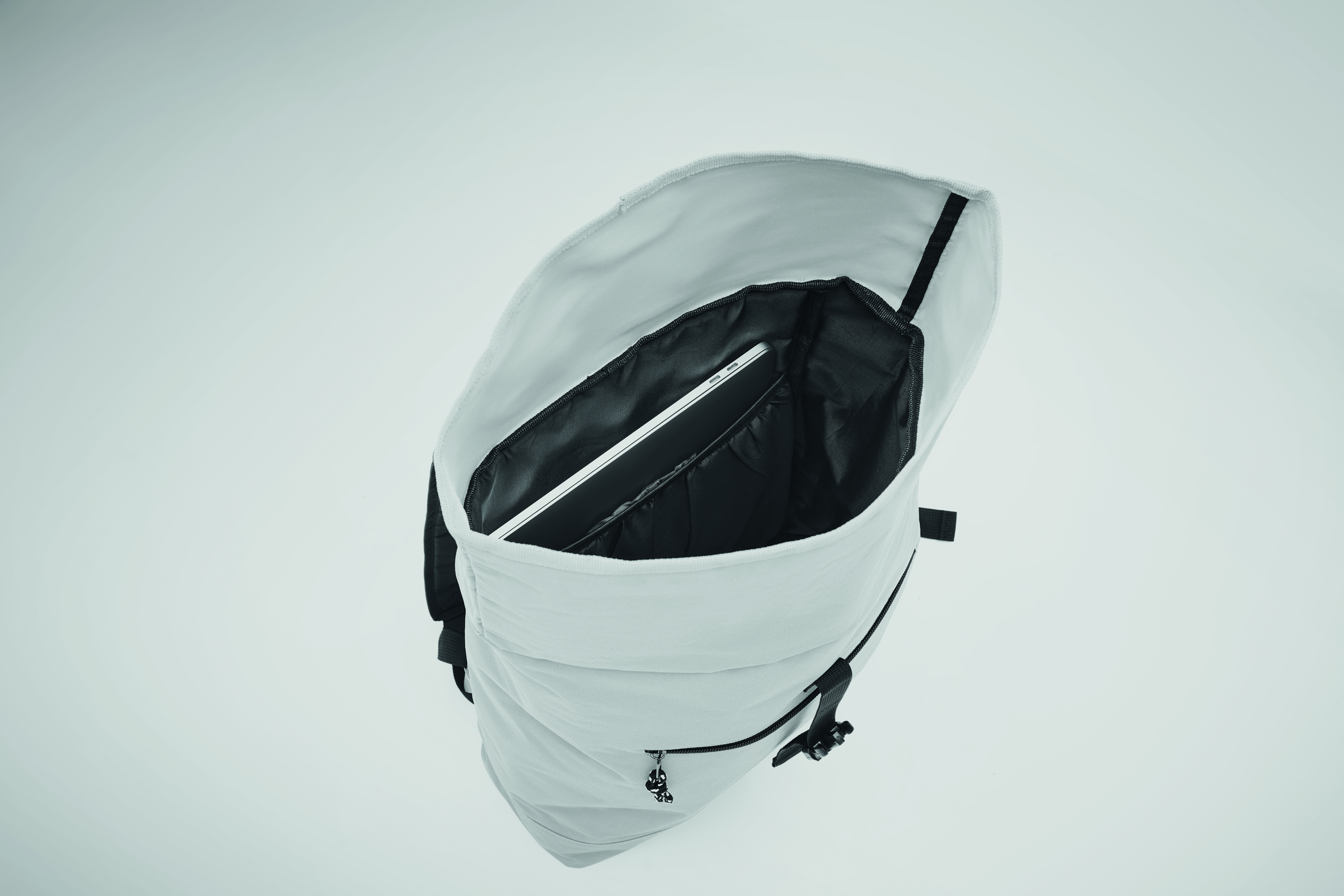 15'''' Rolltop-Rucksack mit Laptopfach aus 600D-Polyester. Gepolsterter Rücken und verstärkter Boden. Fronttasche mit Reißverschluss. 210D-Futter.