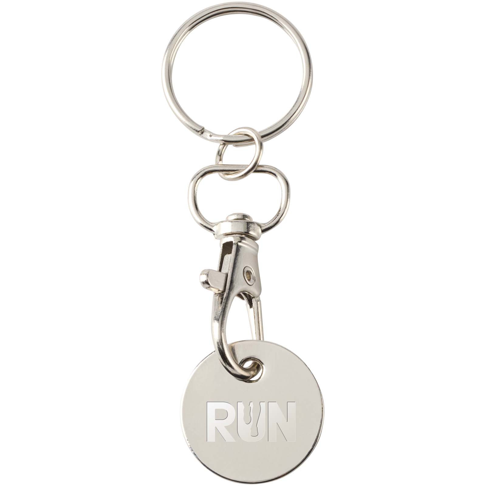 Rory Schlüsselanhänger mit Trolley-Münze mit Logo für Messen und Events.