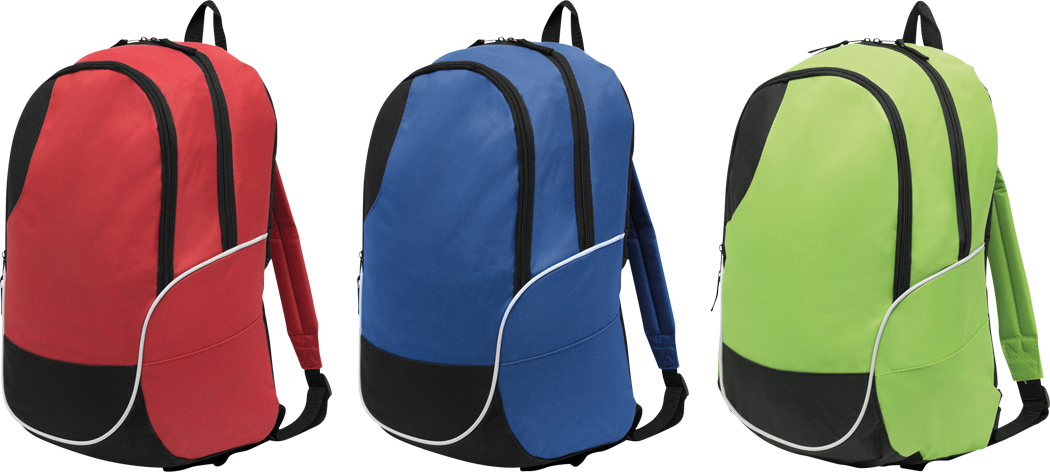 Rucksack CURVE: Reißverschluss-Hauptfach, Reißverschluss-Vorfach, Trageschlaufe, gepolsterte Schultergurte und Rückenbereich