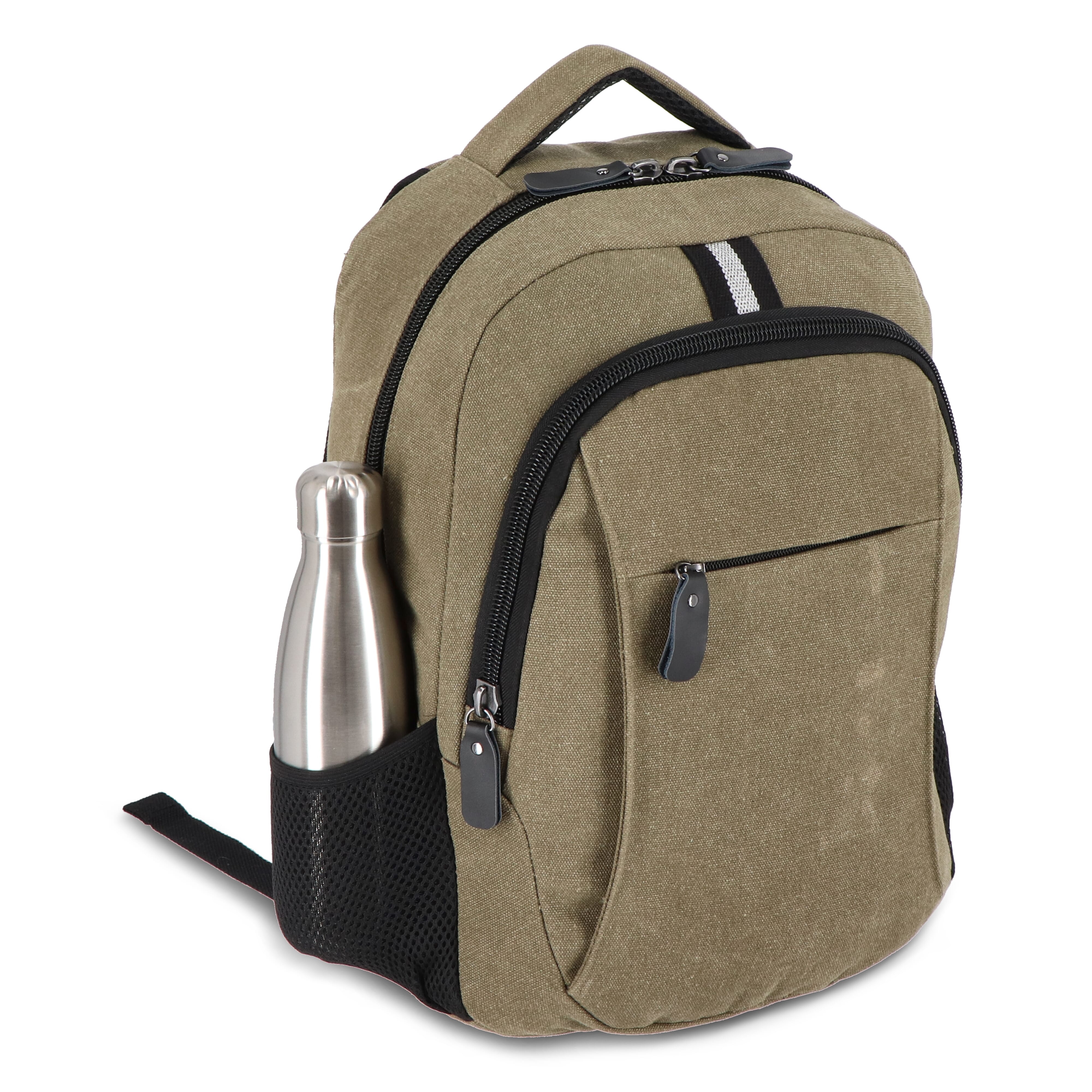 Stilvoller Rucksack aus recyceltem Baumwoll-Canvas. Mit 100 % recyceltem, reflektierendem Gurtband, luxuriösen Reißverschlüssen und Griffen sowie einem Futter aus 100 % recyceltem Polyester. Mit gepolstertem Rücken, Haltegriff, verstellbaren Schultergurten, 2 Seitentaschen für Flaschen oder einen Regenschirm, Fronttasche und Laptop-Innenfach.