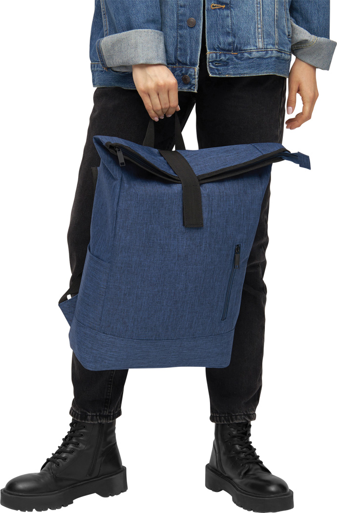 Rucksack MESSENGER: vertikales Reißverschluss-Vorfach, Reißverschluss-Hauptfach mit gepolstertem Innenfach für Laptop oder Tablet, aufrollbar und mit Klettverschluss verschließbar, gepolsterte Schultergurte und Rückenbereich, Trageschlaufe