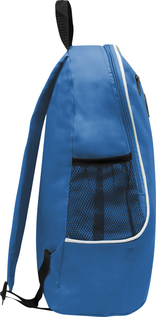 Rucksack TEC: Reißverschluss-Vorfach mit Kopfhörer-Kabelausgang, Reißverschluss-Hauptfach, Trageschlaufe, 2 seitliche Netzfächer, gepolsterte Schultergurte