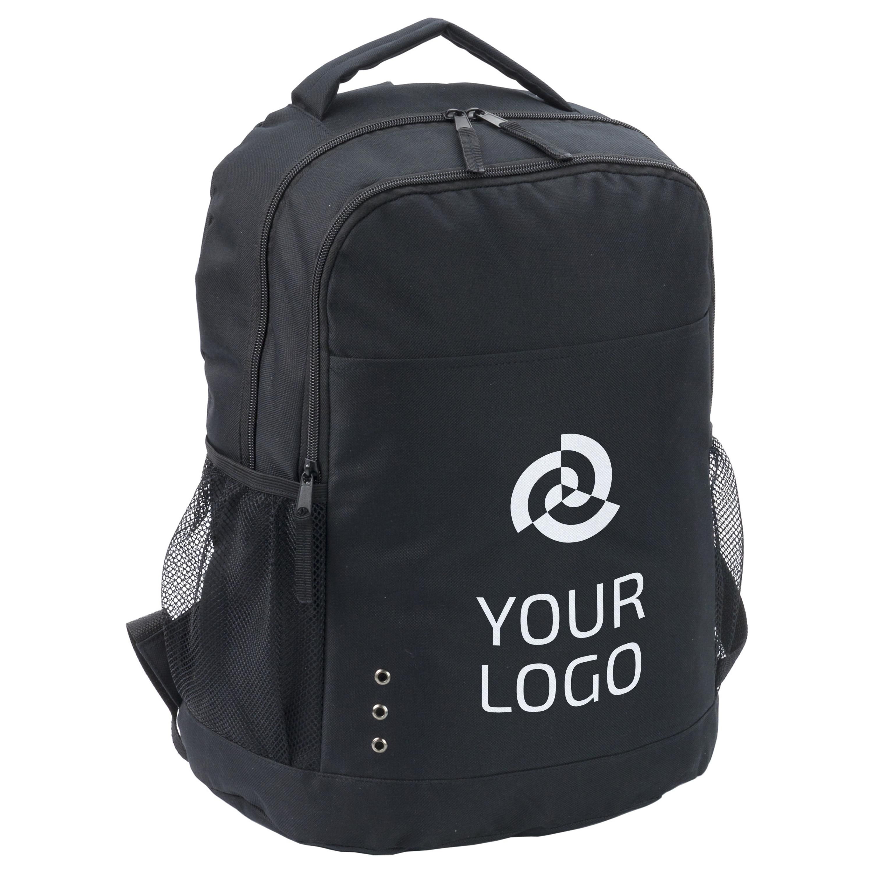 Rucksack aus Polyester Harry als Kundenpräsent mit Firmenlogo.