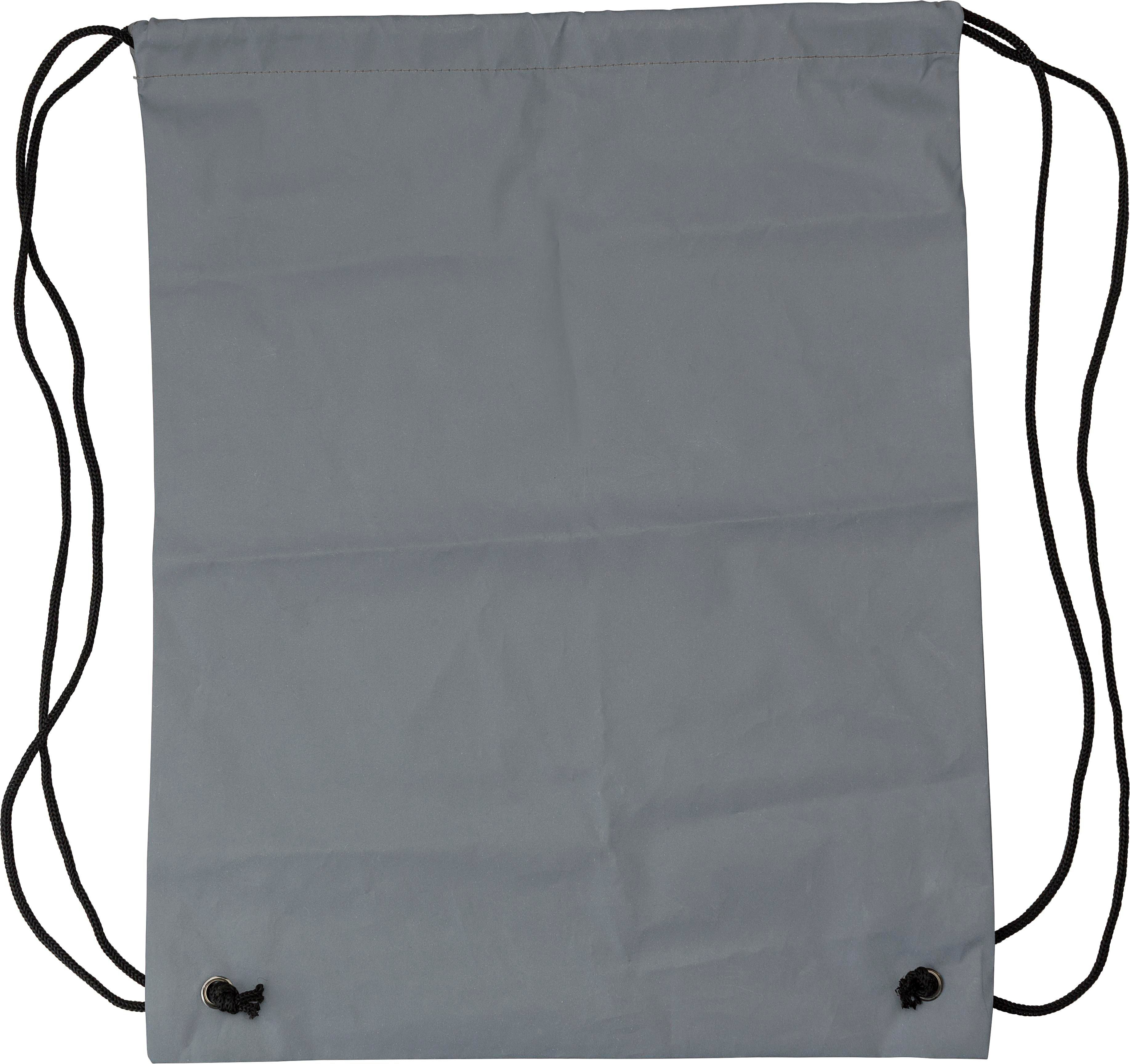 Rucksack mit Kordelzug aus Synthetikfasern. Der gesamte Rucksack ist stark reflektierend.