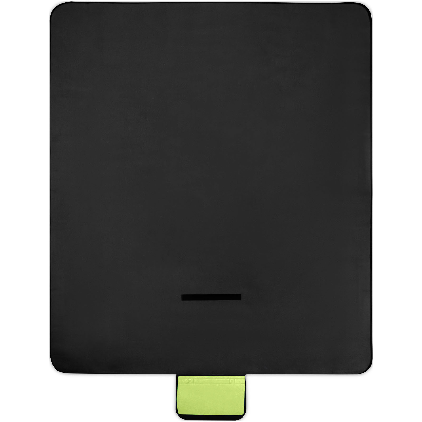 Wasserabweisende Picknickdecke aus recyceltem PET Kunststoff (140 g / m²). Einmal gefaltet und gesichert, lässt sich die Decke mit dem mitgelieferten Tragegriff leicht verstauen und transportieren.