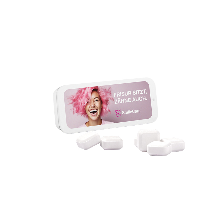 Schiebedeckeldose, Traubenzuckerquadrate mit Logo für Marketingaktionen.