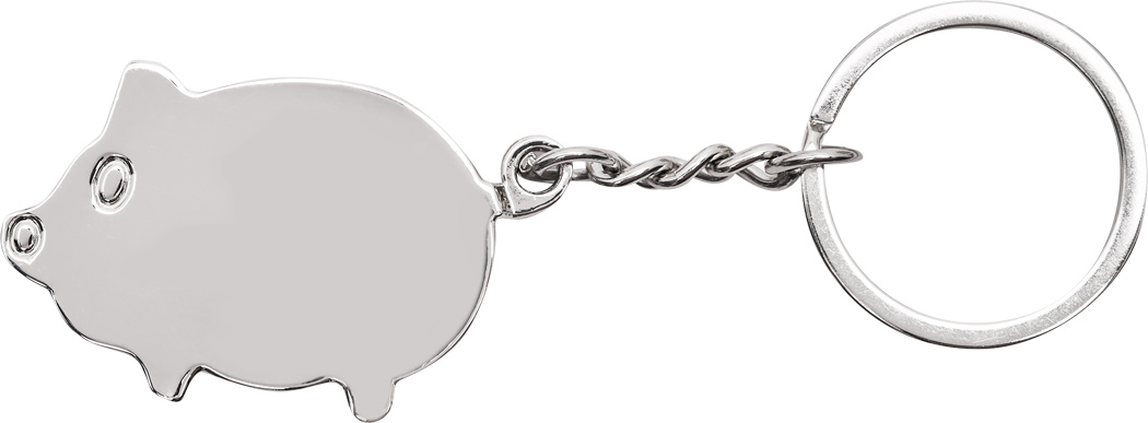 Schlüsselanhänger CHAMBA: Metall-Schweineform, mit integriertem Einkaufswagen-Chip und Schlüsselring, in Box