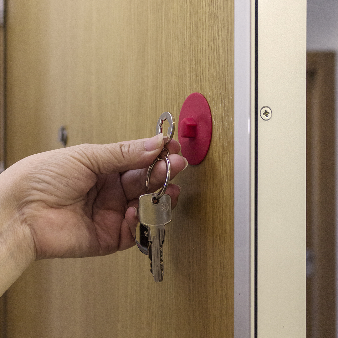 Origineller Metall-Schlüsselanhänger mit abnehmbarem Saugnapf in lebendigen Farben. Zum Aufhängen des Schlüsselbundes, einfach den Saugnapf an einer flachen Oberfläche befestigen. Mit Druckfläche aus Metall für Laserdruck.