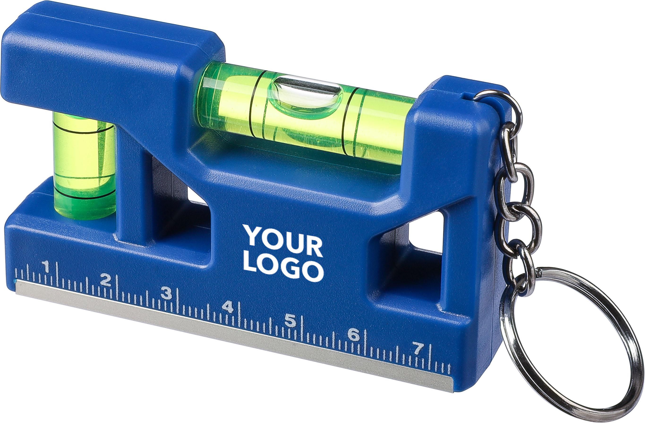 Schlüsselanhänger Wasserwaage Indira aus recyceltem ABS als Werbegeschenk mit Aufdruck.