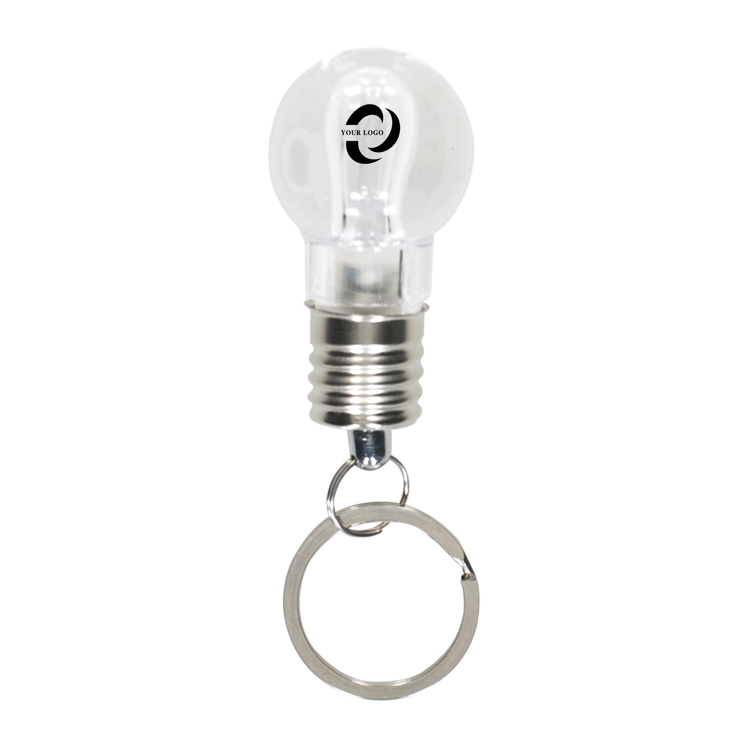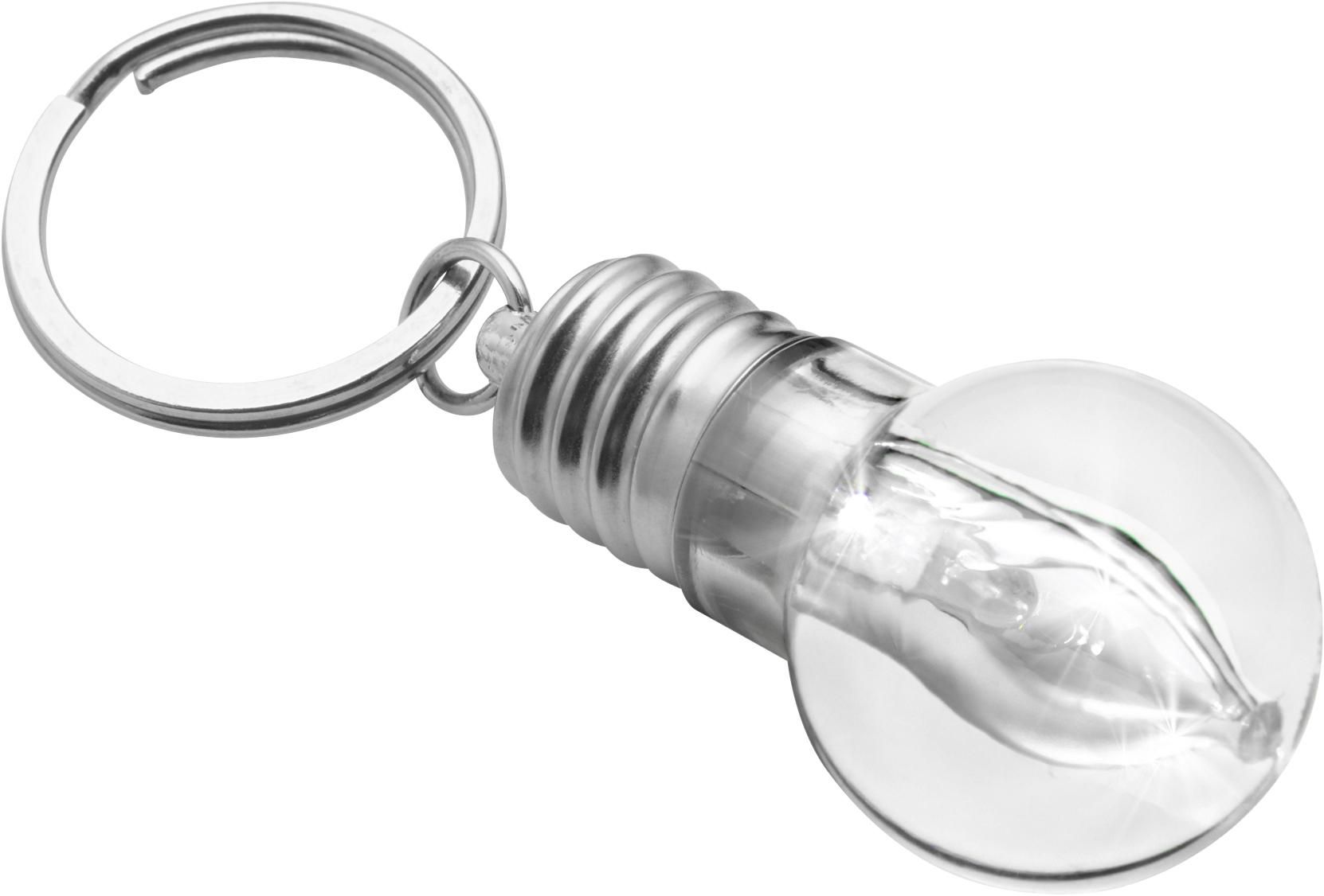Schlüsselanhänger aus Kunststoff, mit LED-Lampe (weiß) und Metall-Schlüsselring.