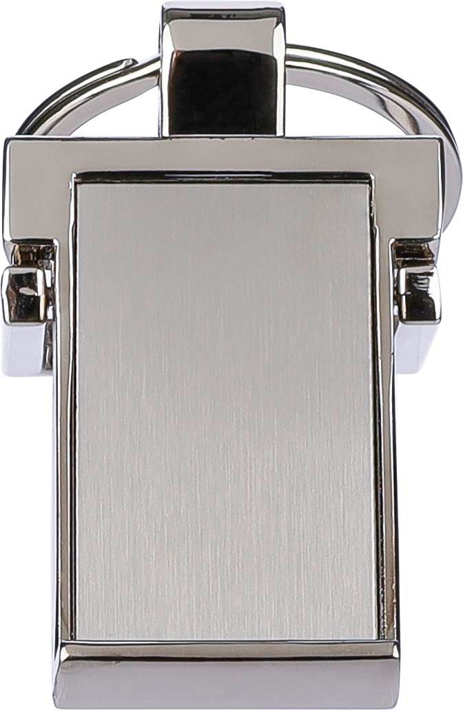 Schlüsselanhänger aus Zinklegierung mit Metallring. Der Schlüsselanhänger dient als Telefonständer. Einzeln verpackt in einer braunen Papiertüte.