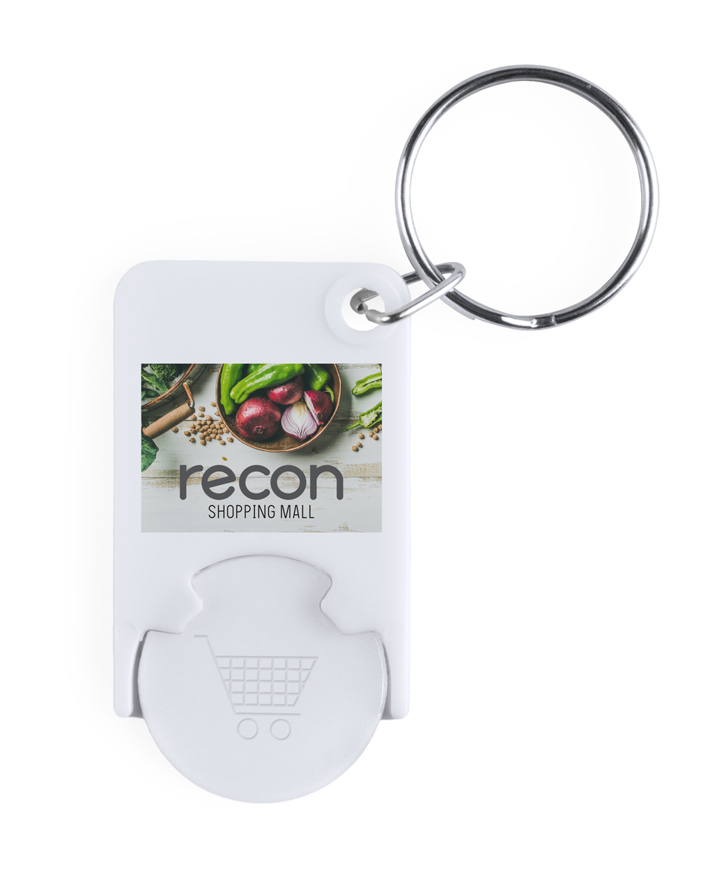 Schlüsselanhänger mit Einkaufswagenchip Trolex mit Logo für Geschäftskunden.