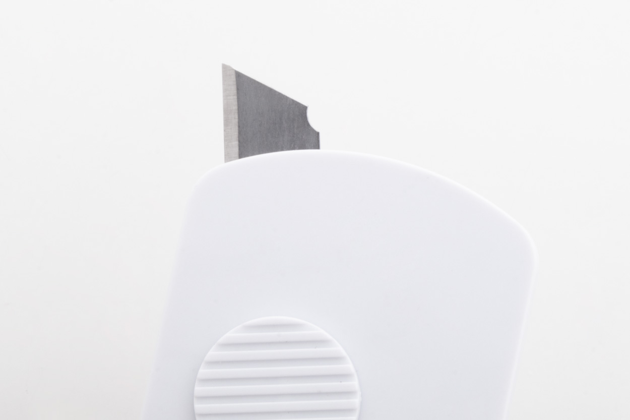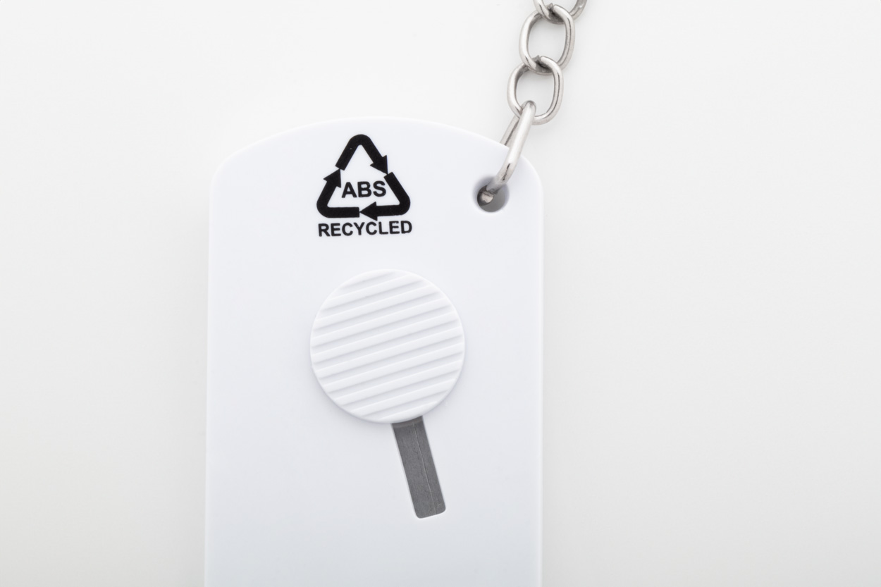 Papiermesser aus recyceltem ABS Kunststoff und Edstahl mit selbseinziehender Klinge und Metallschlüsselring.