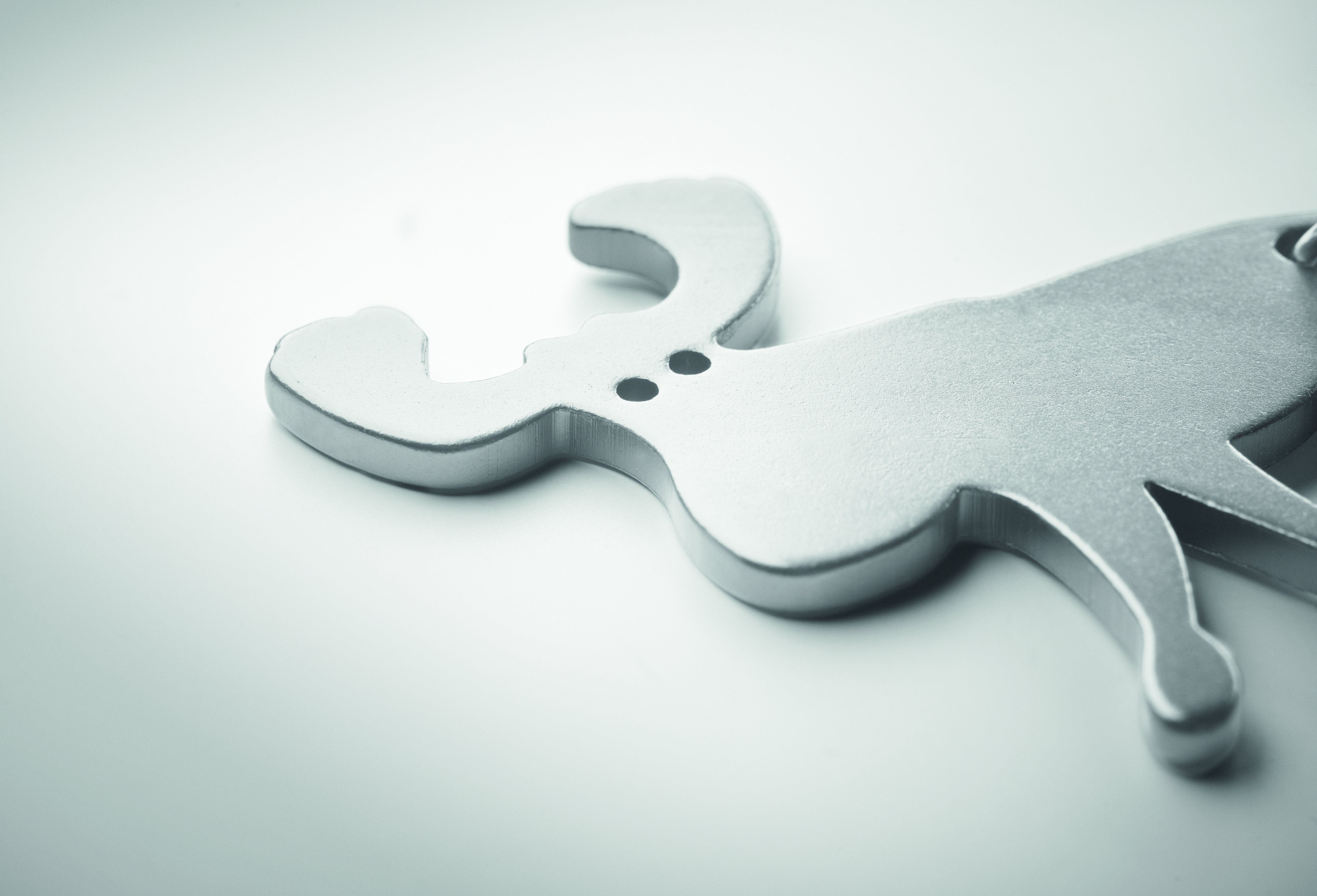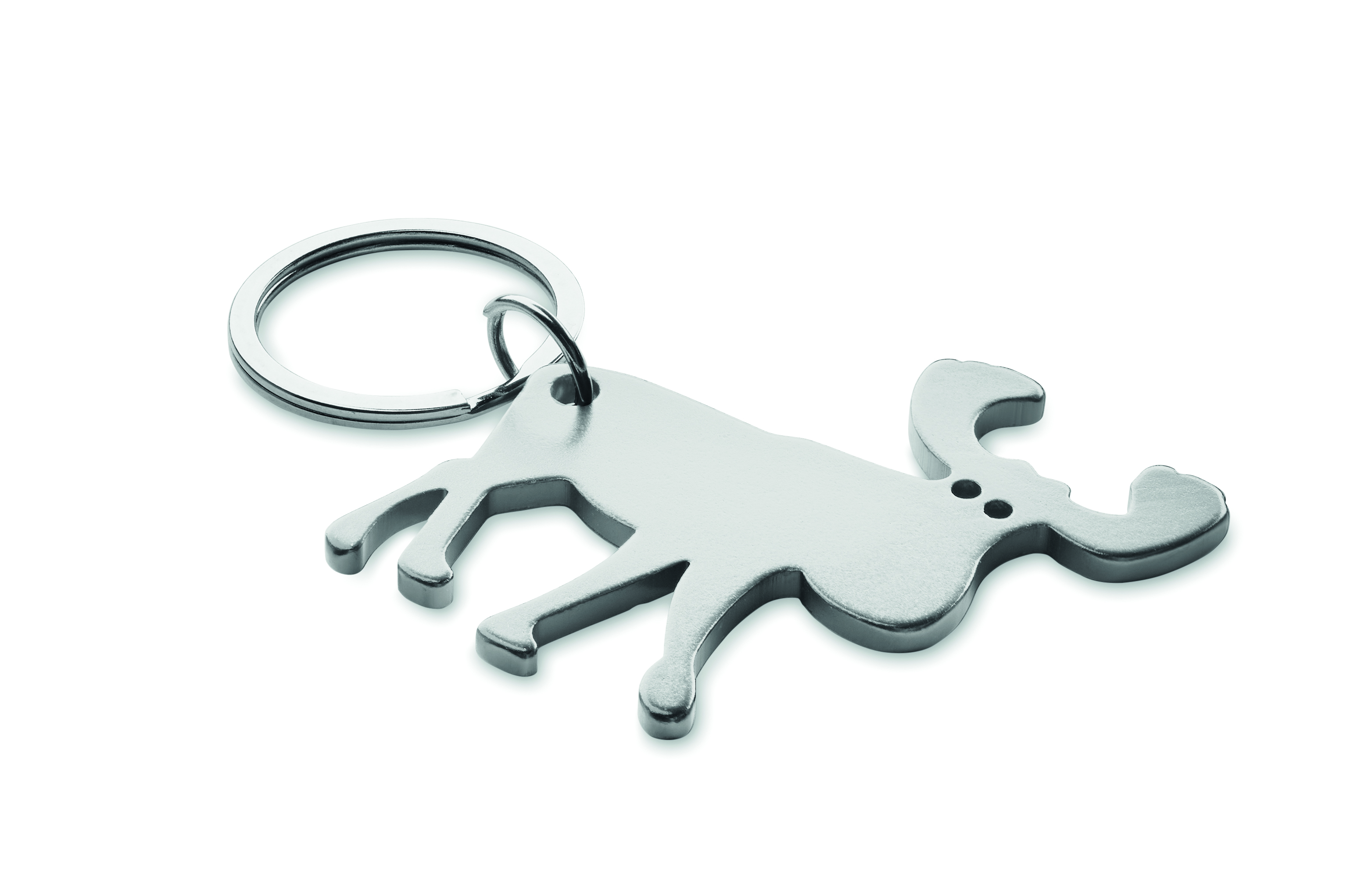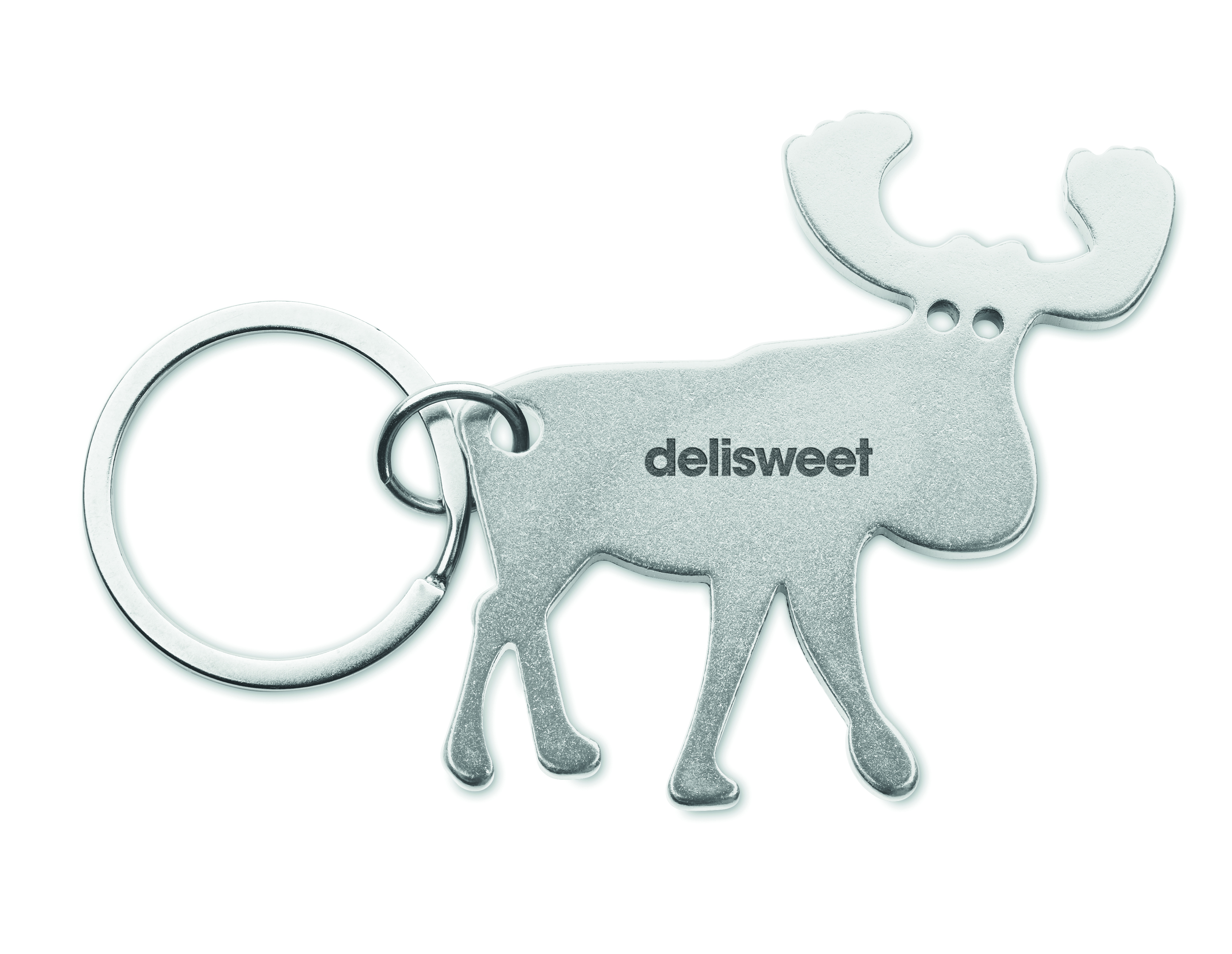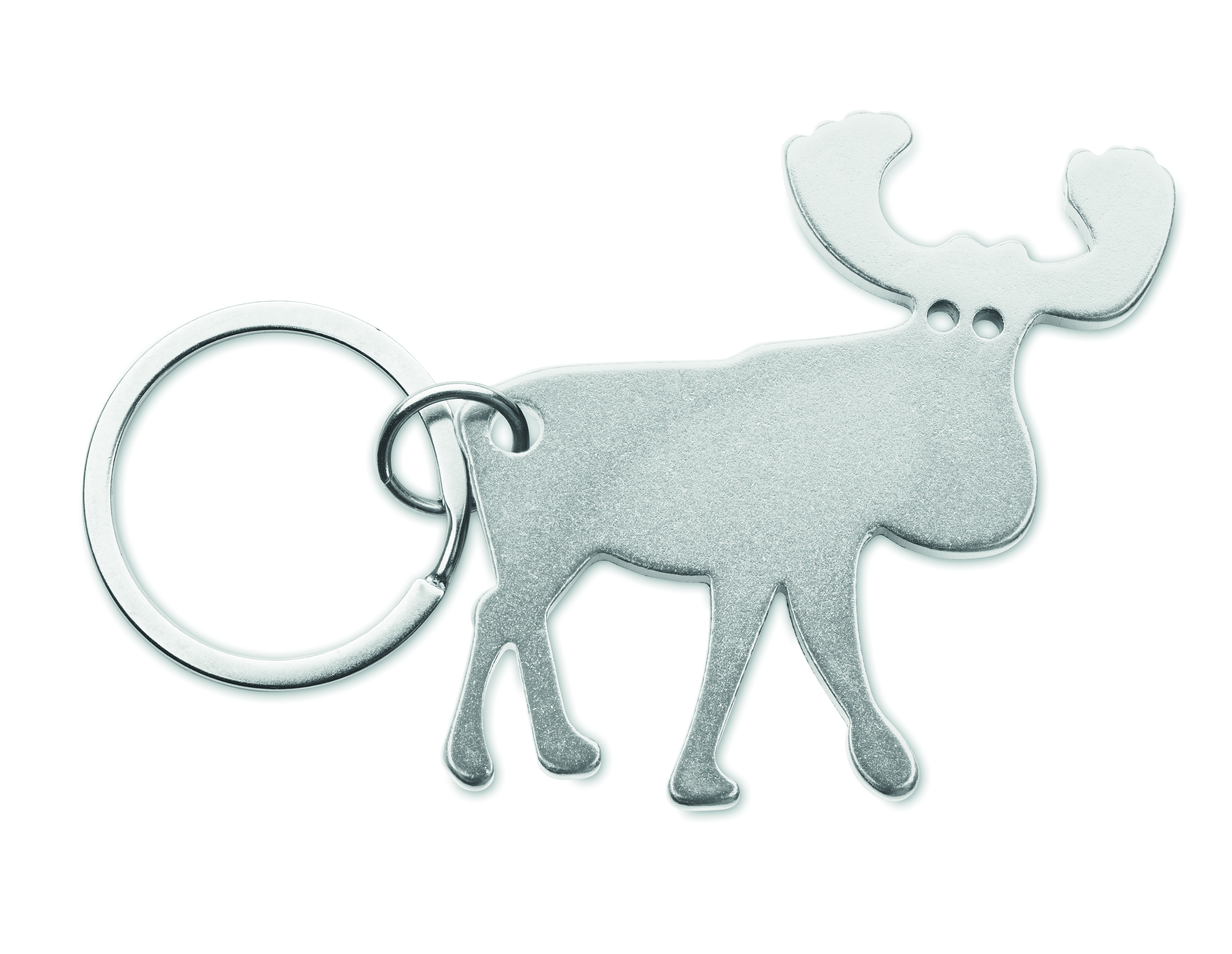 Schlüsselring mit Kapselheber in Form eines Rentiers. Recyceltes Aluminium.