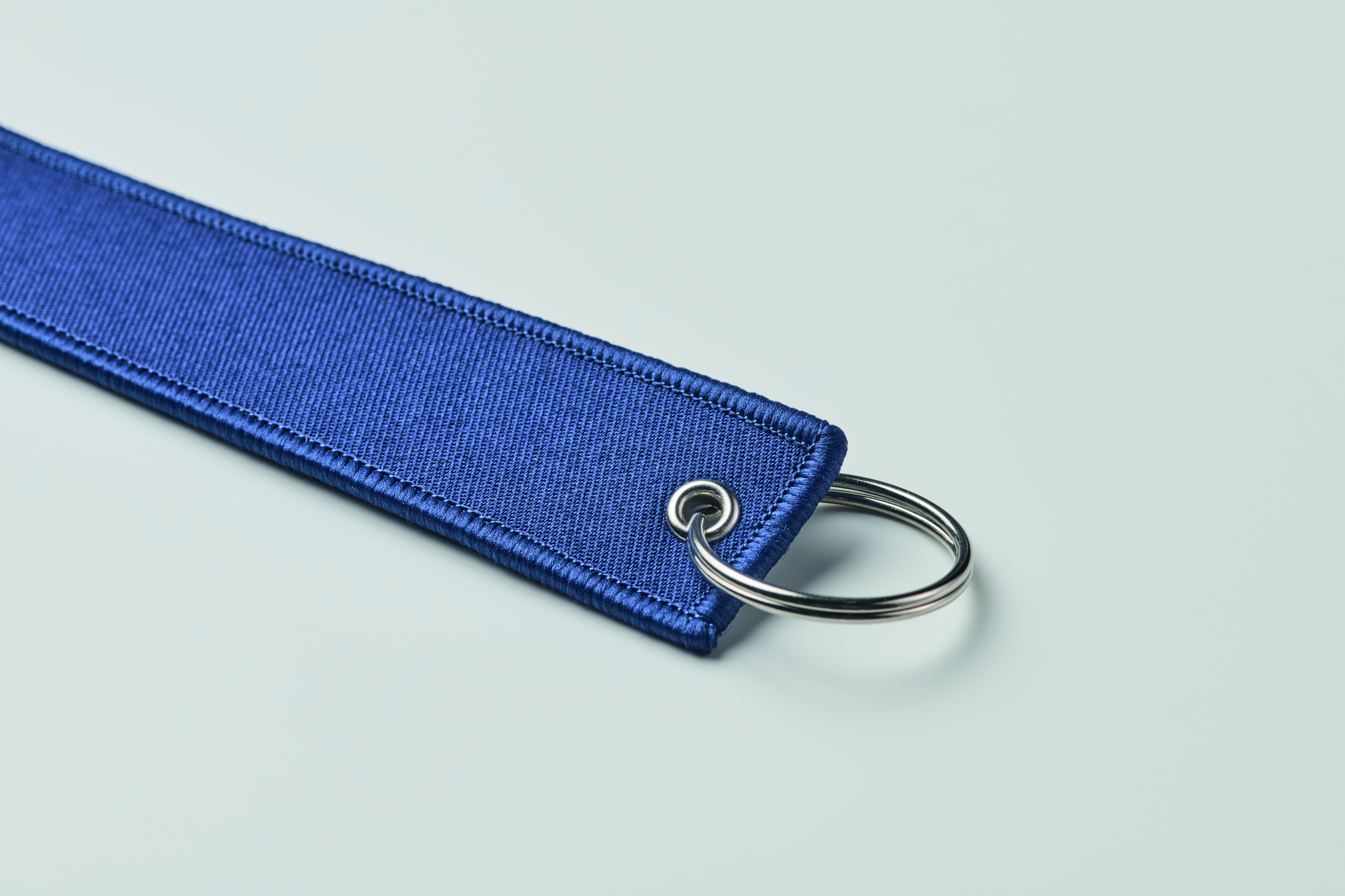 Schlüsselring Polyester Tag TAKEOFF mit Firmenlogo für Promotions.