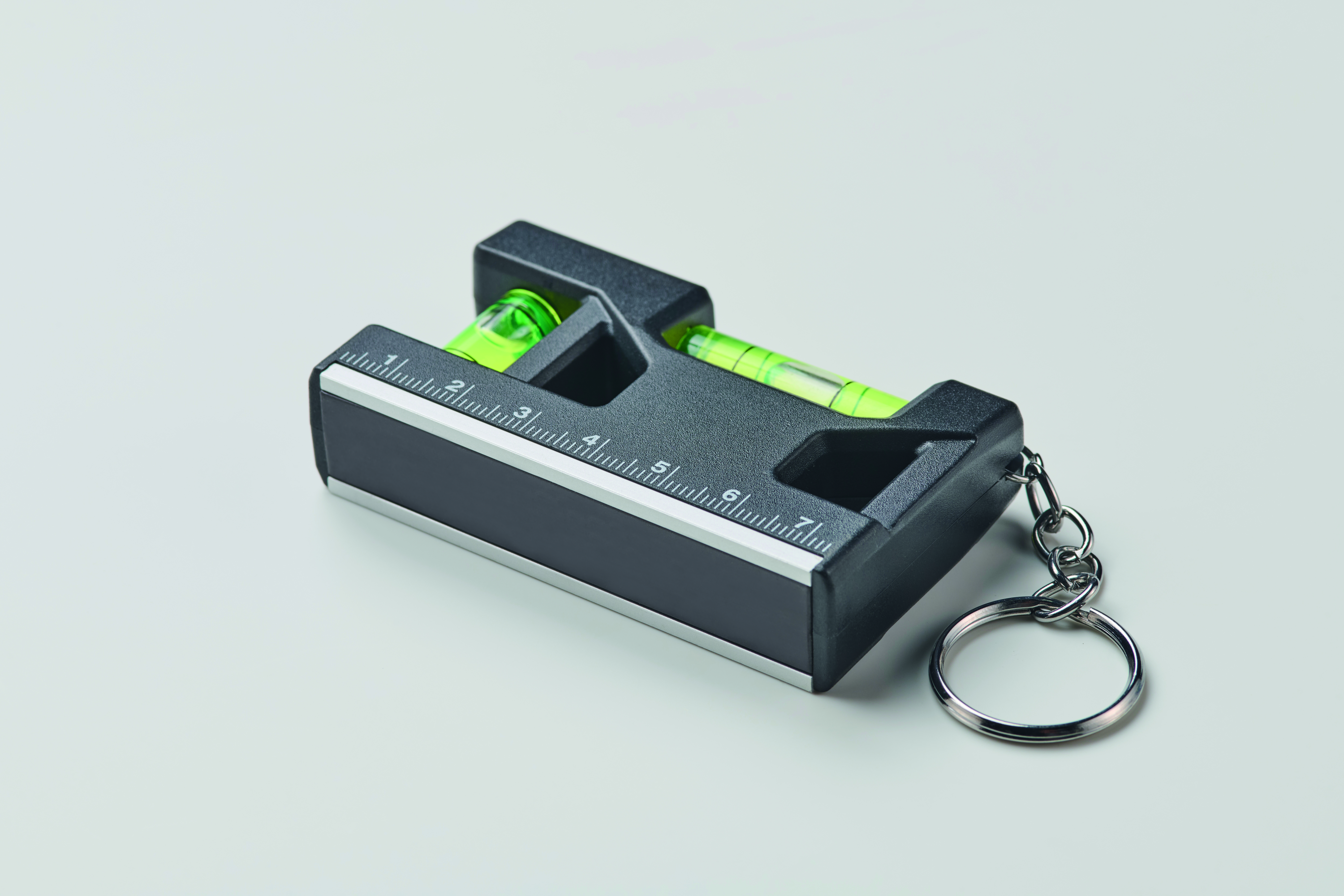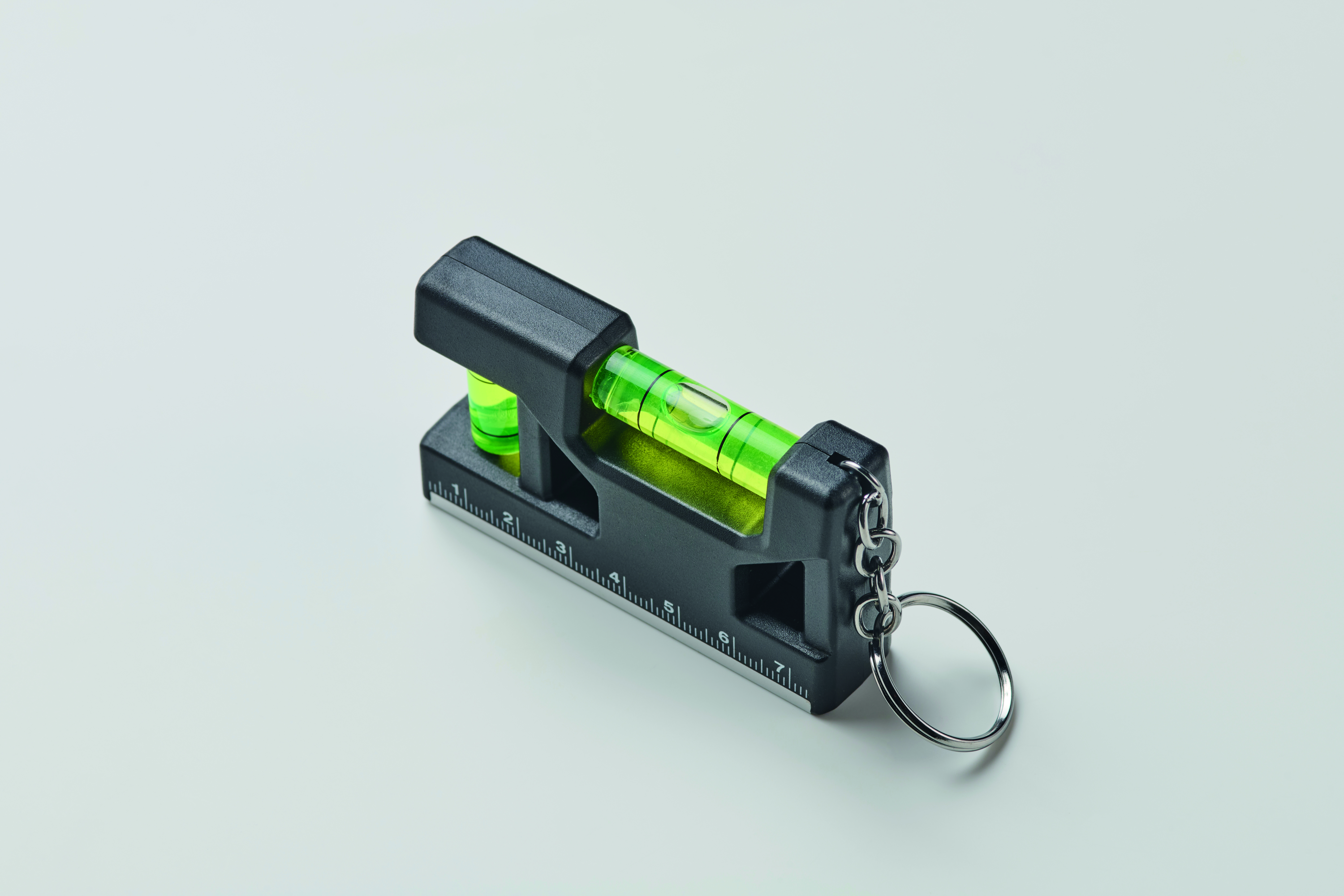 Schlüsselring mit Wasserwaagen, Magnet und kleinem Lineal. ABS. (Die Wasserwaage ist KEINE Präzisionswasserwaage).