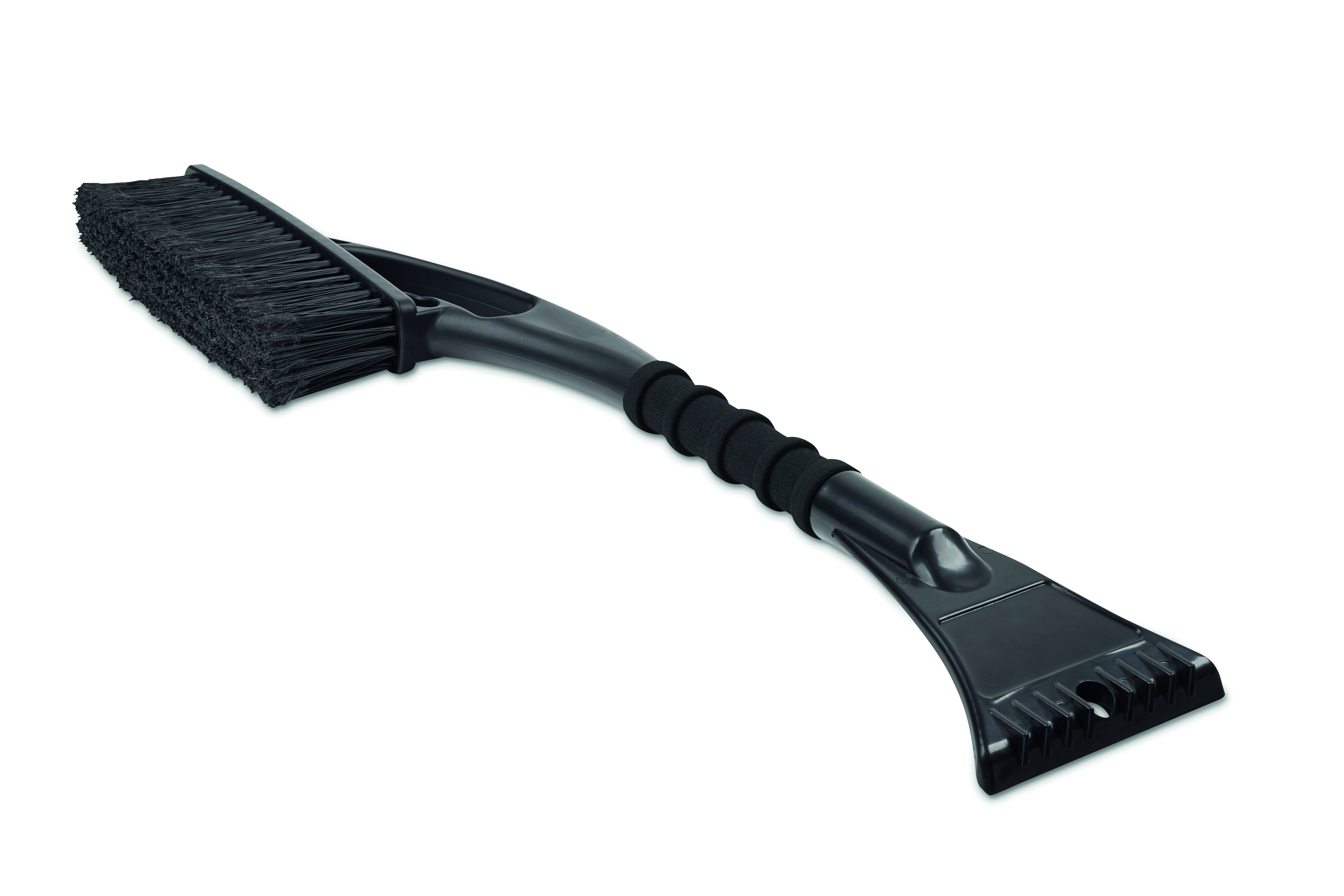 Schneefeger aus PET mit integriertem Eiskratzer aus ABS. Schaumstoffummantelter Griff.