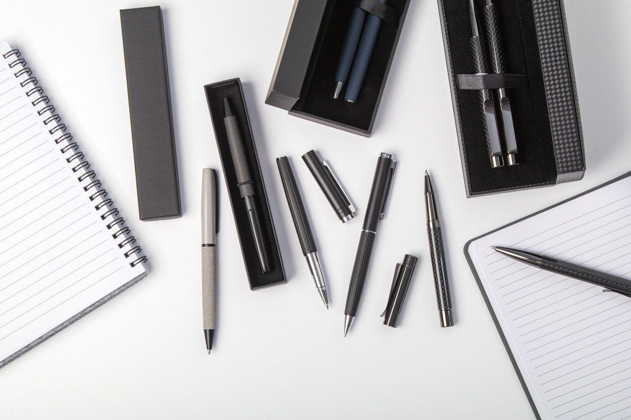 Schreibgeräteset Stripo bedruckt mit Logo und kurzfristig lieferbar.